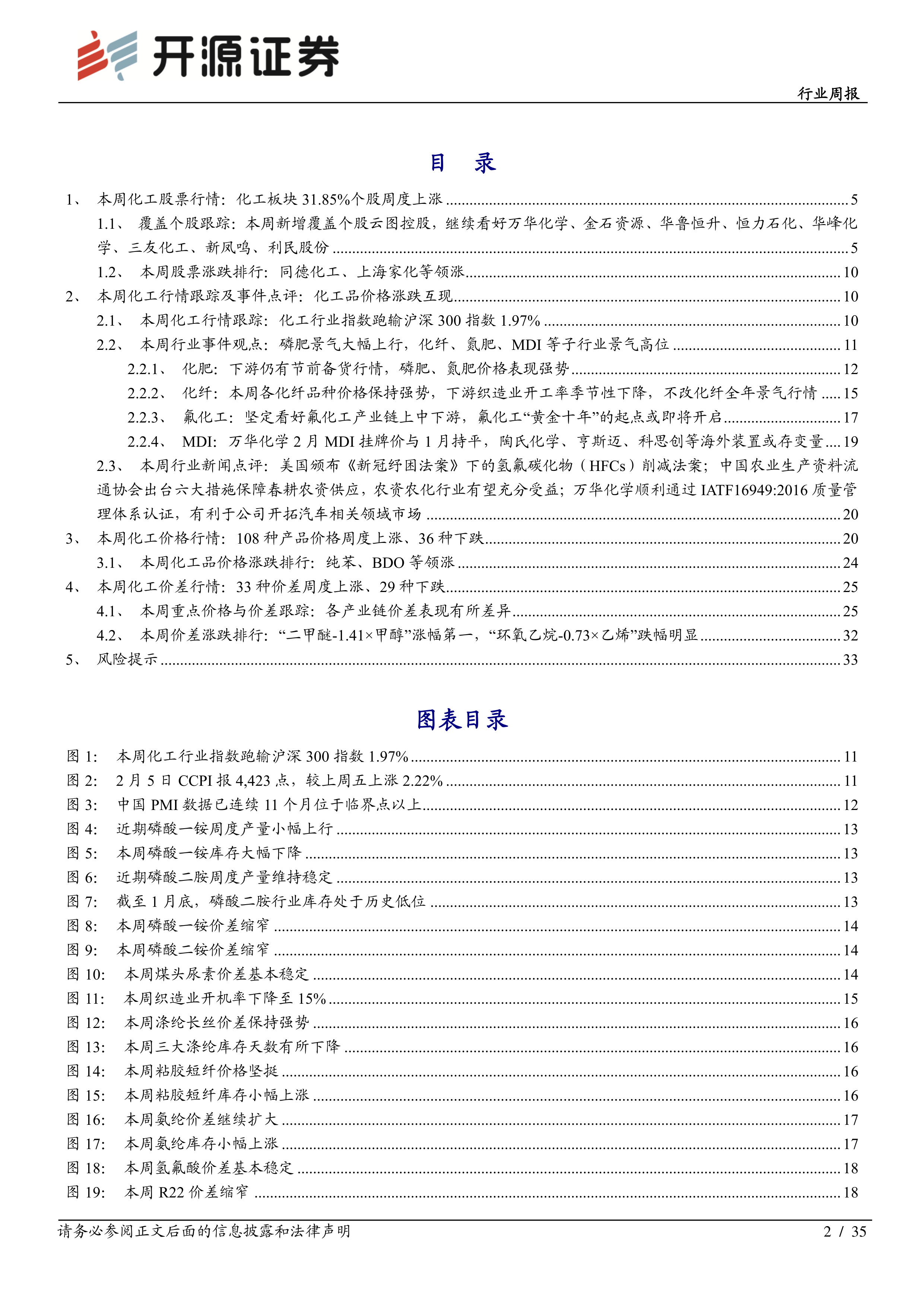 本报告对2021年2月第一周化工行业进行了全面分析,涵盖了股票行情、价格行情、价差行情以及行业新闻等方面。报告指出,磷肥行业景气度大幅上行,化纤行业价格坚挺,MDI行业价格上涨预期强烈。制造业保持扩张态势,部分化工子行业龙头企业值得关注。报告也提示了油价大幅下跌、环保督察不及预期、下游需求疲软、经济下行等风险。 投资者需谨慎参考,并结合自身情况做出投资决策。