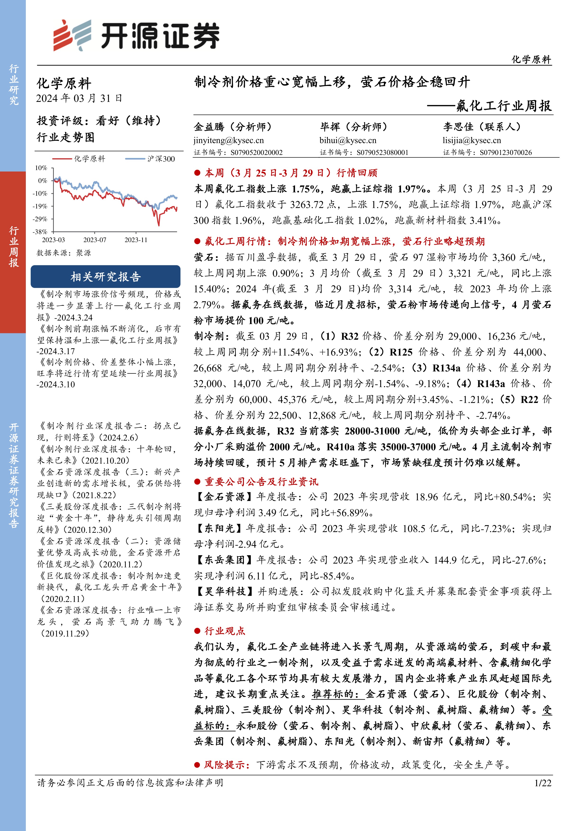 本报告详细分析了氟化工行业近期走势,涵盖了萤石和制冷剂两个主要子行业,并对相关上市公司进行了点评。