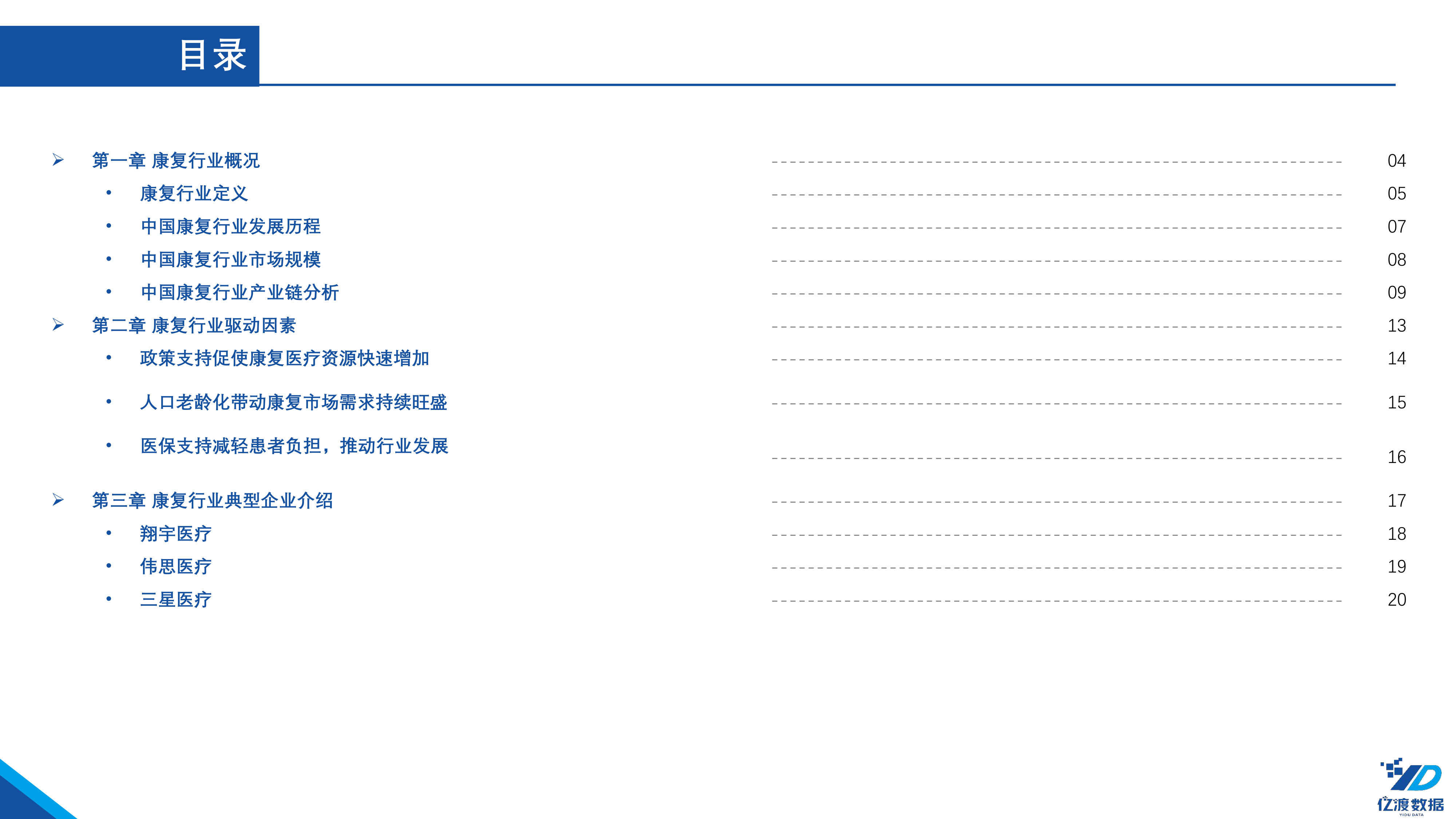 本报告主要从康复行业概况、驱动因素、典型企业三个方面展开分析。