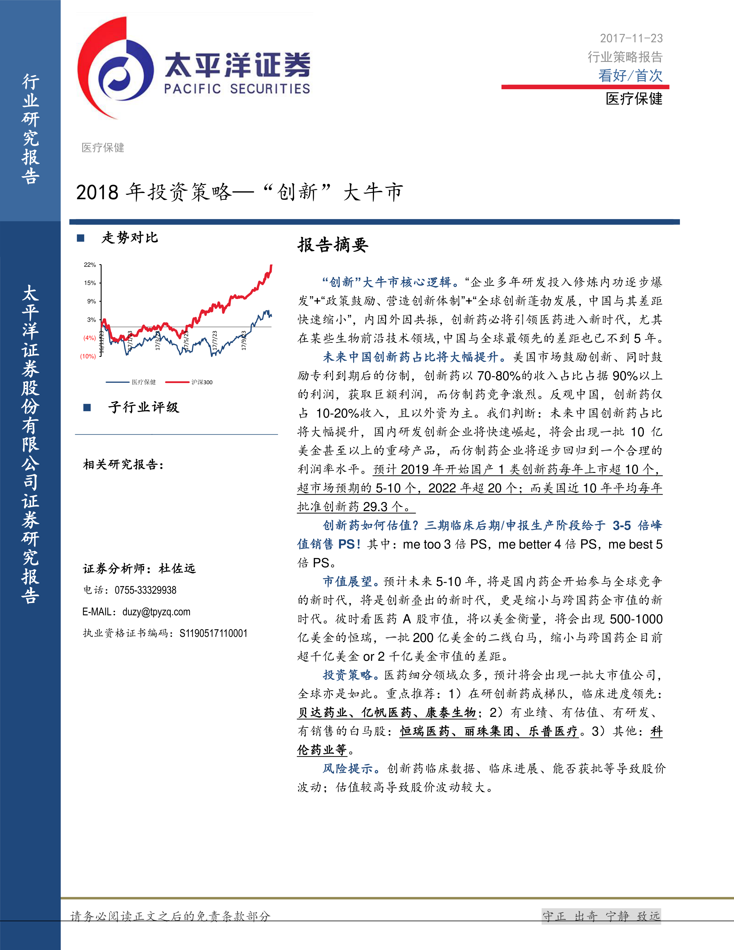 医疗保健2018年投资策略:“创新”大牛市