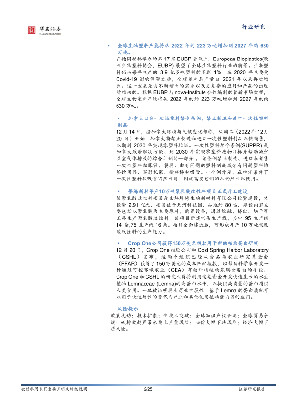 报告分析了多家公司的研发方向,包括东庚公司新一代PGA工艺技术、高强高模尼龙66工业丝及浸胶帘子布开发等国内研发,以及德国Manupackagin可生物降解塑料开发、Balena可生物降解鞋推出等国外研发。