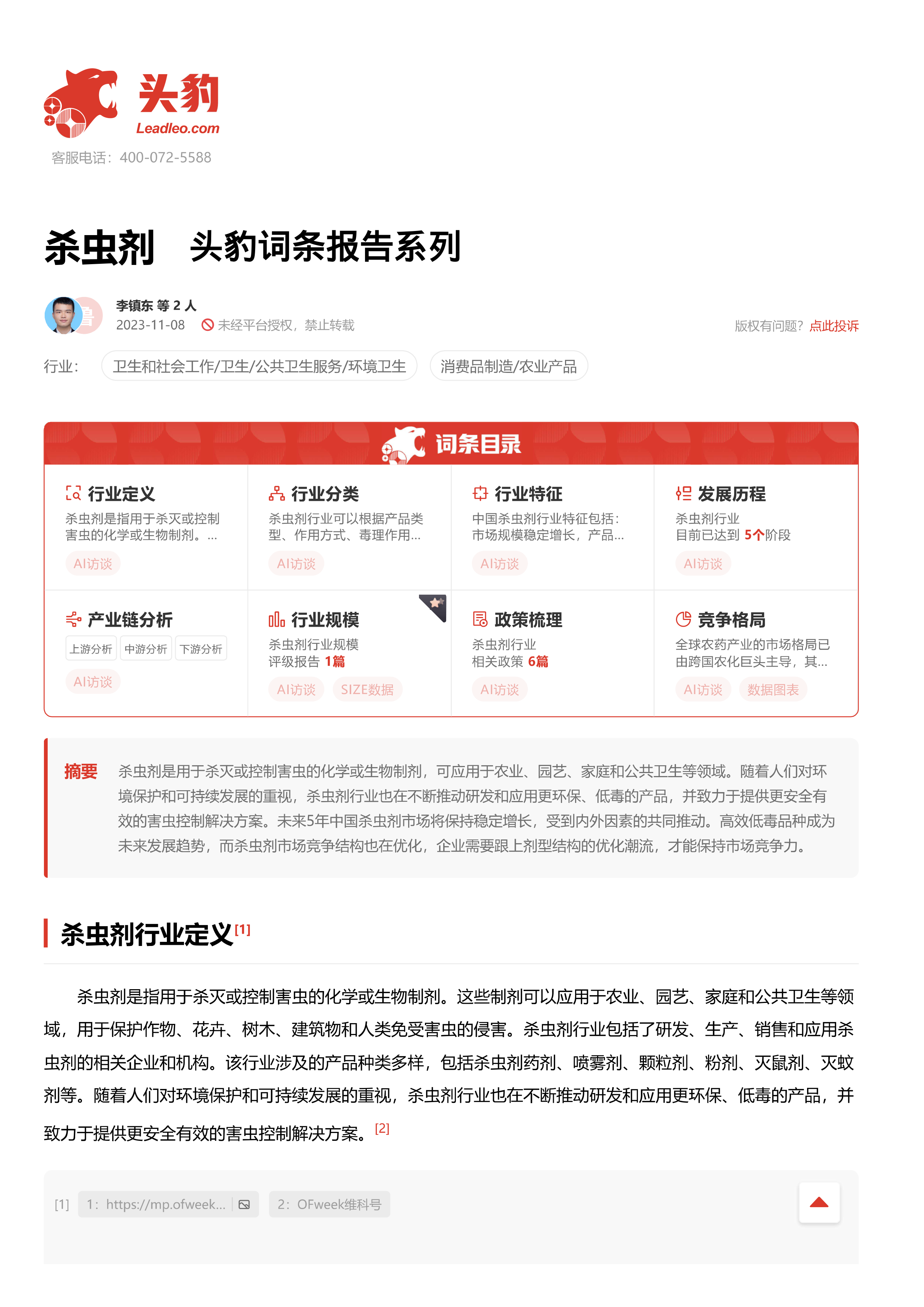 杀虫剂 头豹词条报告系列