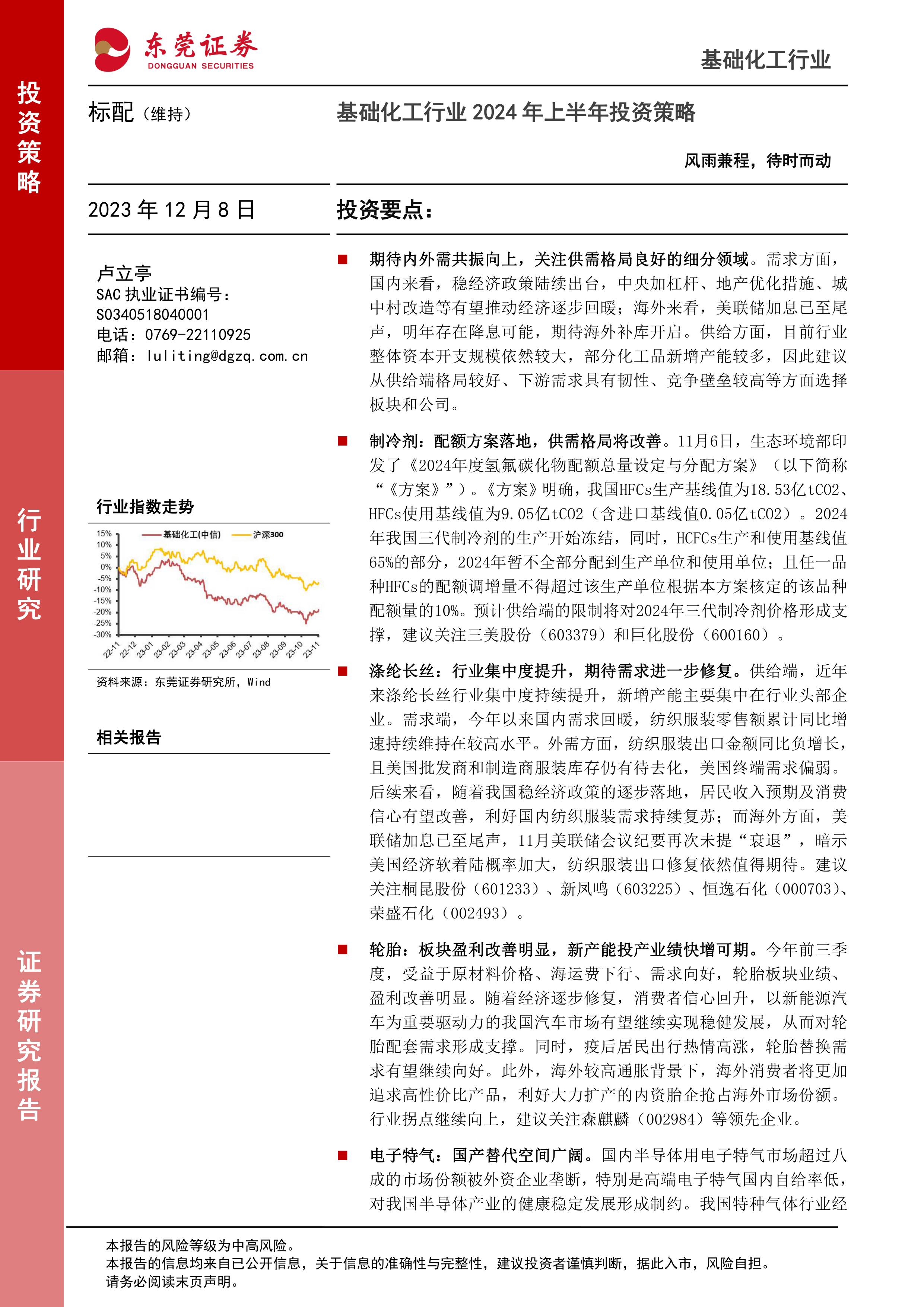 基础化工行业2024年上半年投资策略:风雨兼程,待时而动