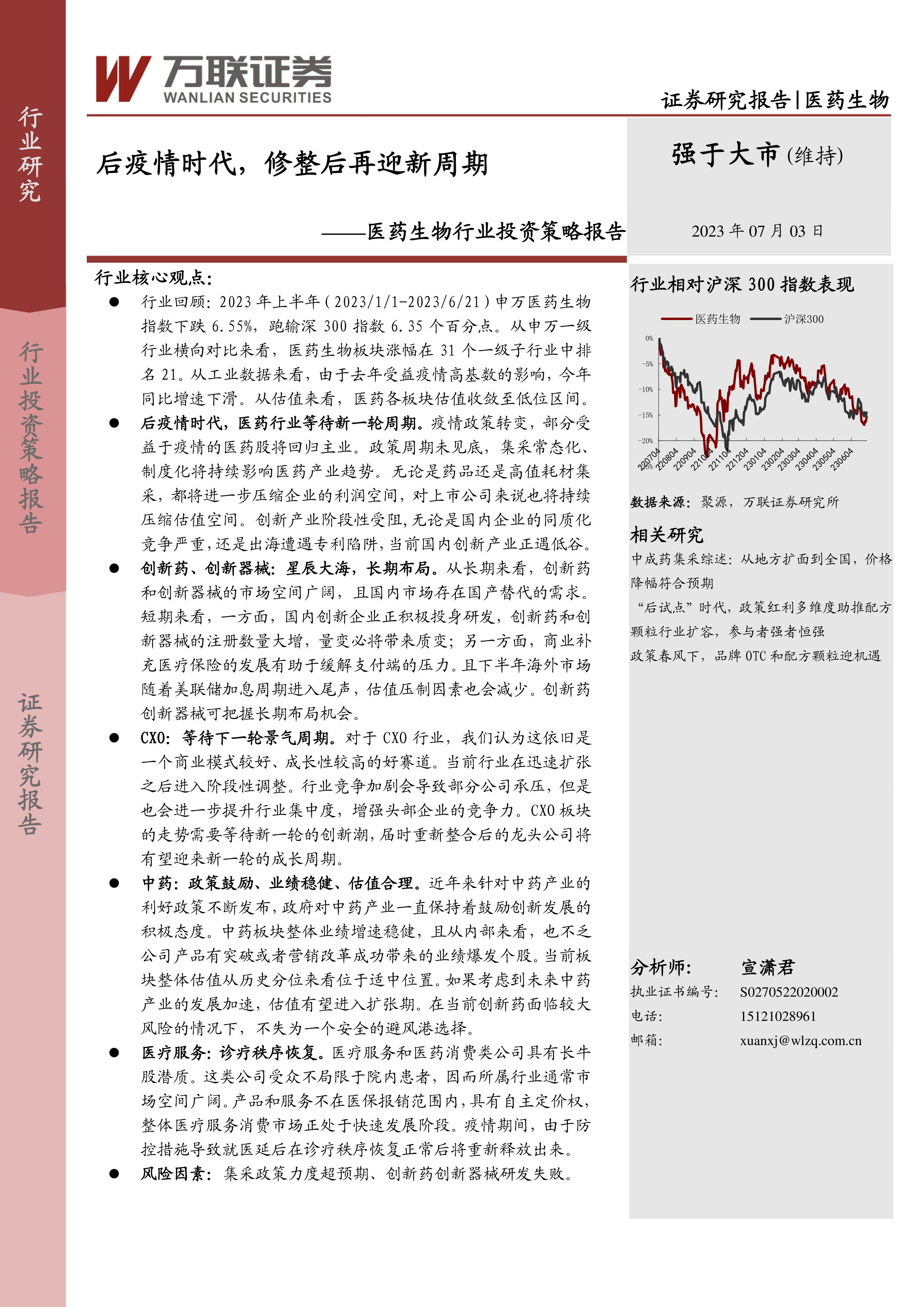 医药生物行业投资策略报告:后疫情时代,修整后再迎新周期