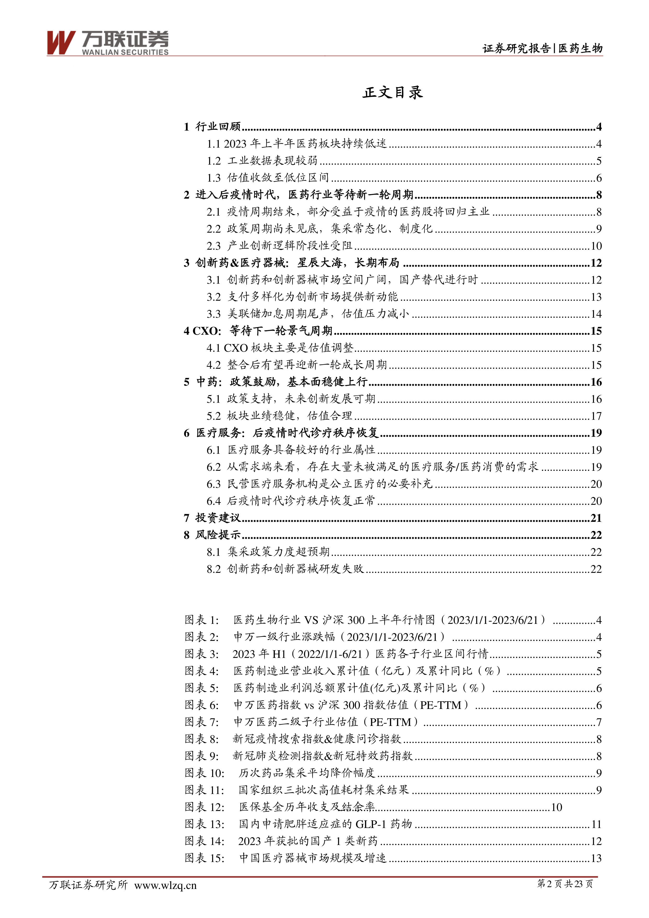 本报告的核心观点是:后疫情时代,医药行业正经历一个调整期,等待新一轮周期。行业整体表现低迷,估值收敛至低位,但长期来看,创新药、创新器械、CXO和中药等领域仍具有发展潜力。报告建议投资者关注长期布局机会,并提示集采政策力度超预期和研发失败等风险。