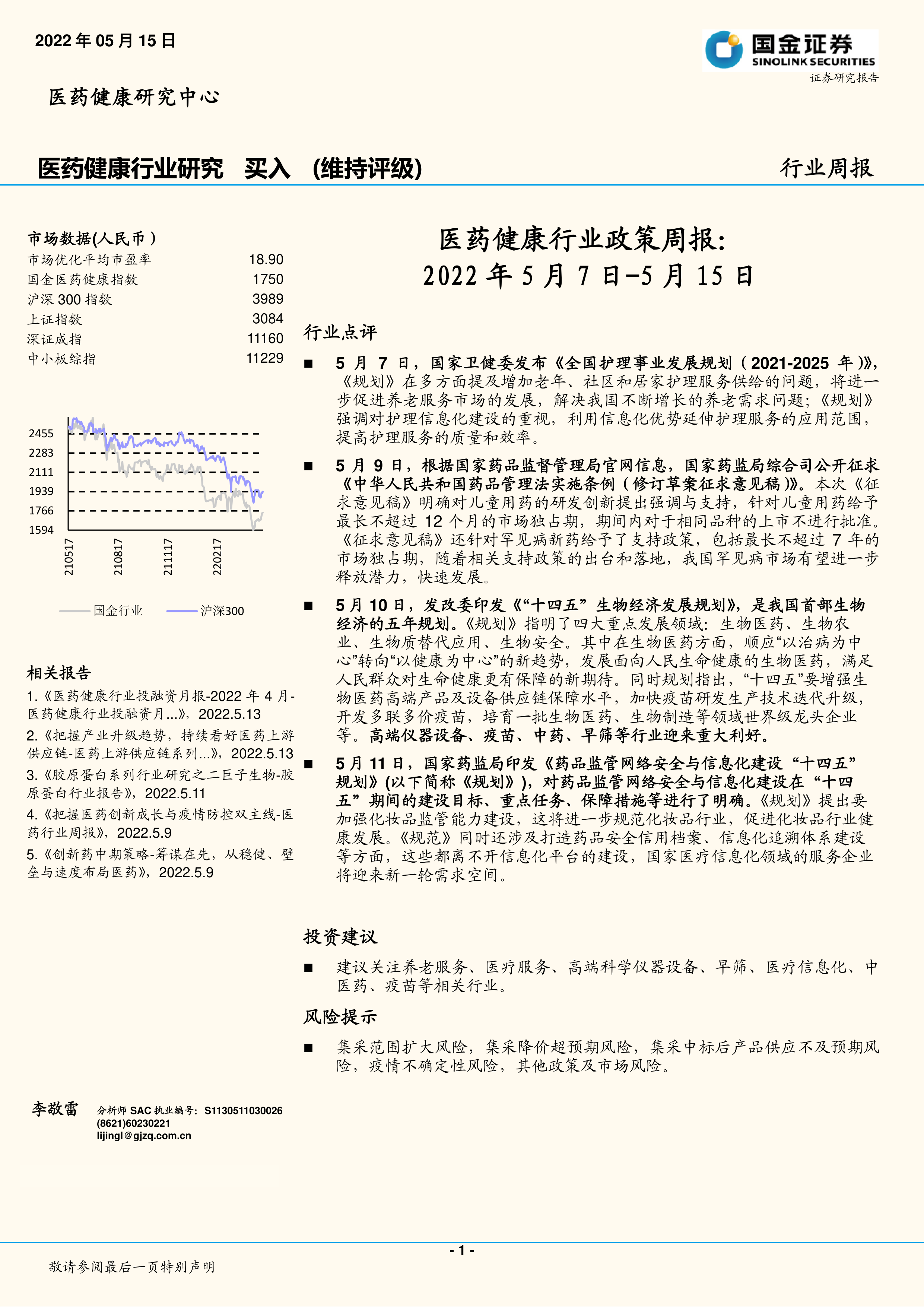 本报告的核心观点是:近期中国医药健康行业政策密集出台,为养老服务、儿童用药、罕见病治疗、疫苗研发、医疗信息化、中医药等多个细分领域带来利好,推动行业转型升级,并促进生物经济发展。 然而,集采政策带来的风险仍需关注。