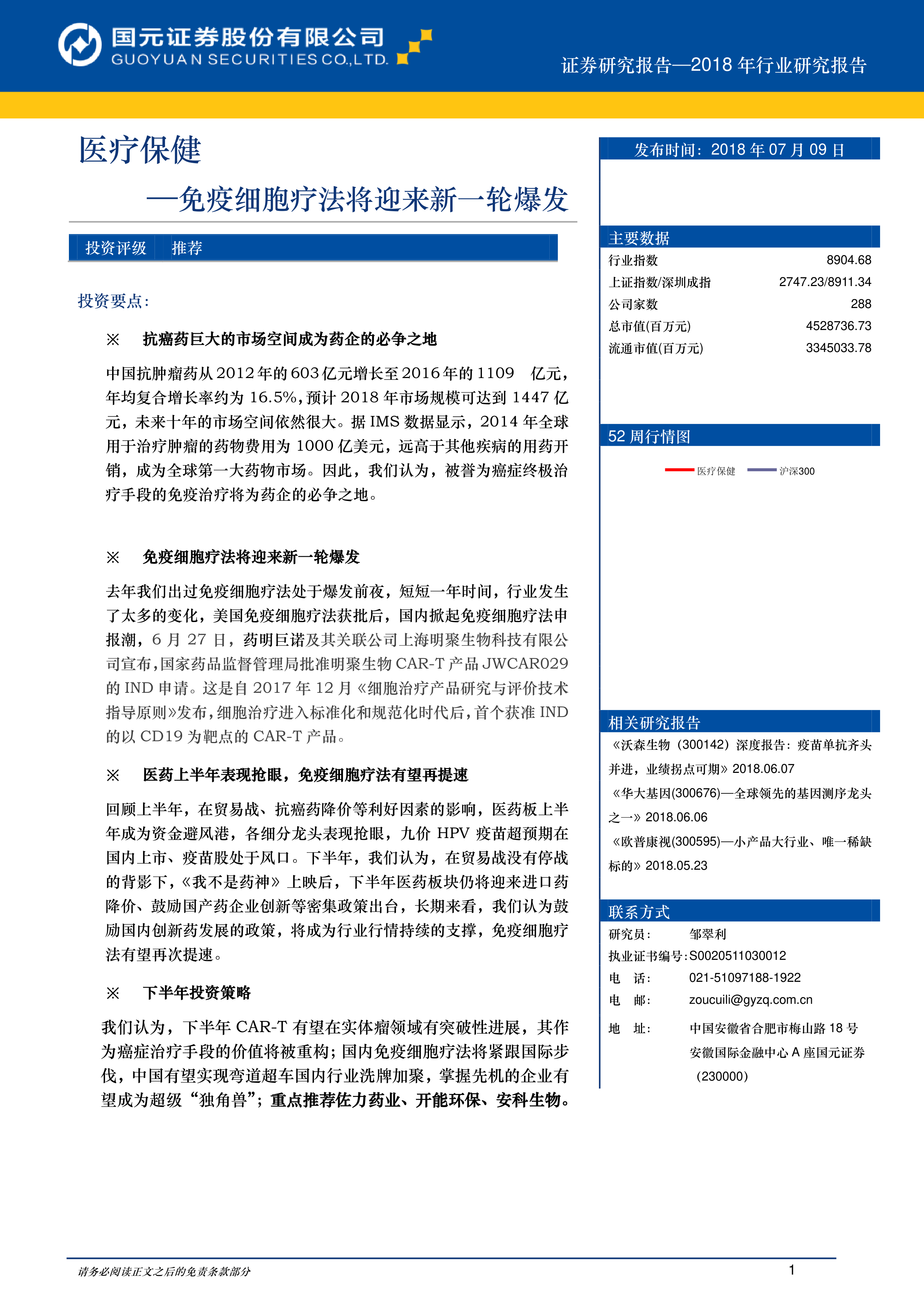 医疗保健:免疫细胞疗法将迎来新一轮爆发