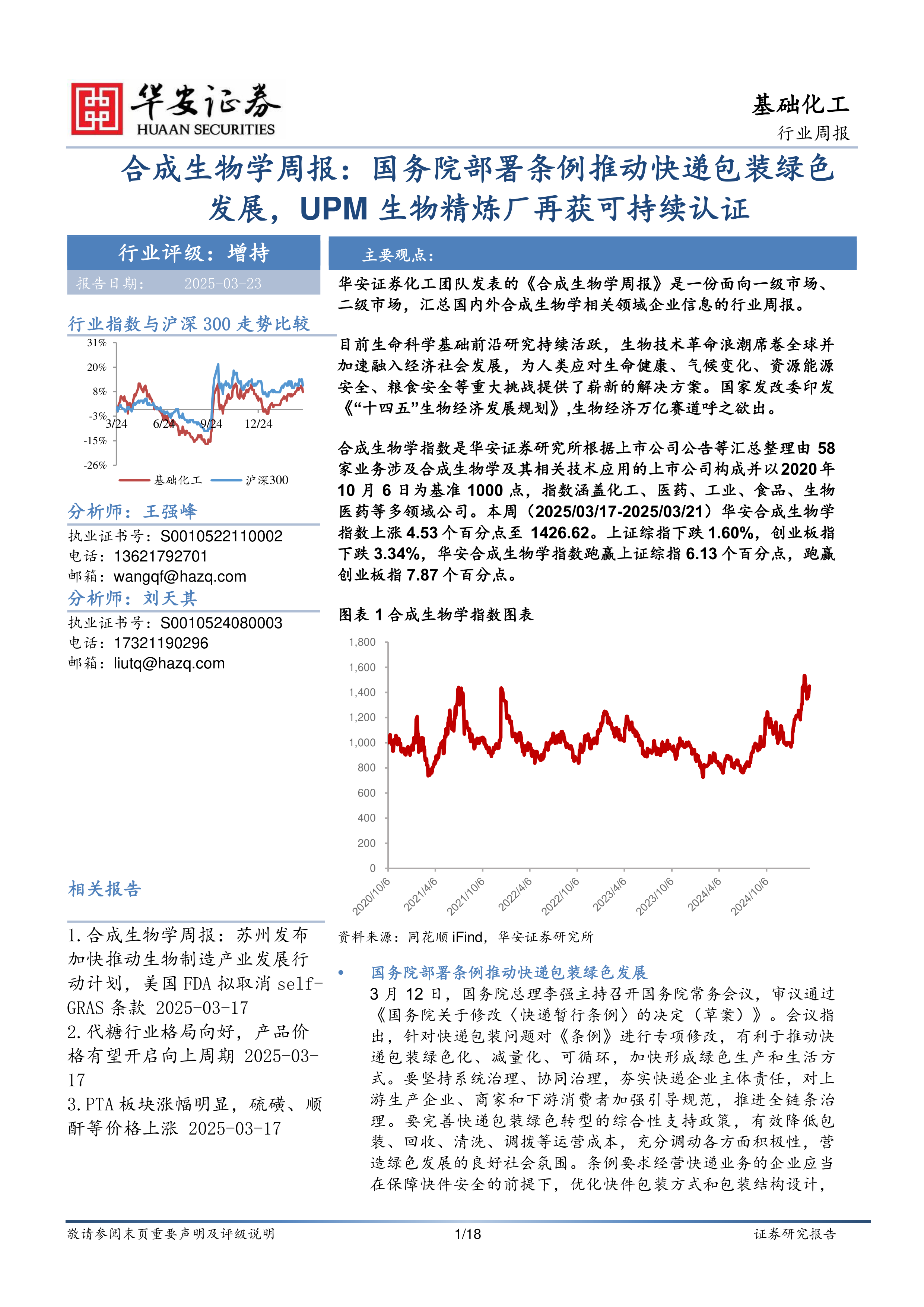 合成生物学周报:国务院部署条例推动快递包装绿色发展,UPM生物精炼厂再获可持续认证