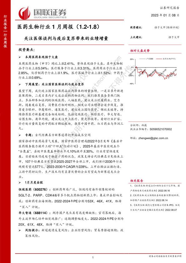 医药生物行业1月周报:关注医保谈判与疫后复苏带来的业绩增量