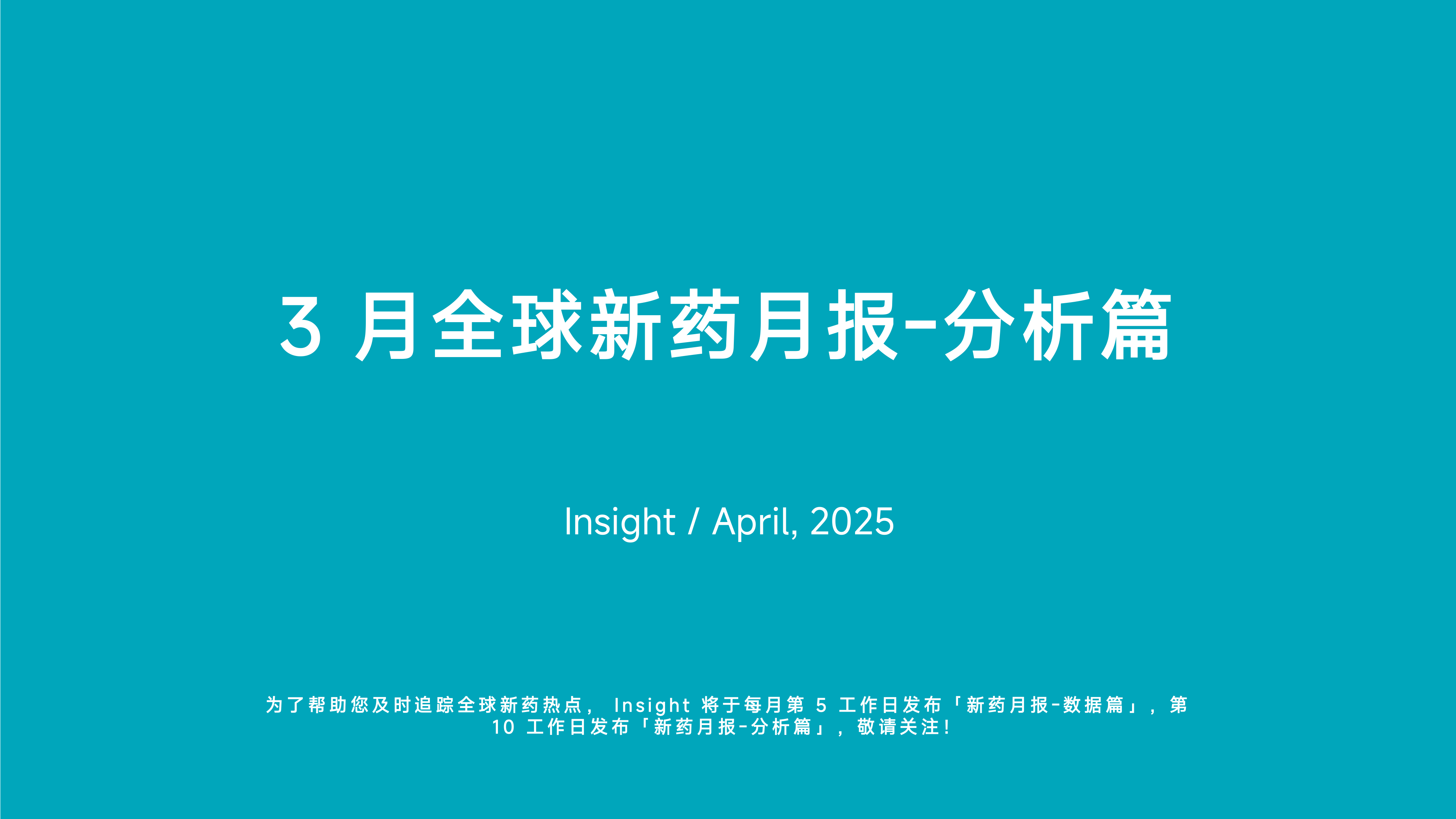 本报告基于Insight数据库的统计数据,对2025年3月全球新药市场进行了专业分析。核心观点包括: