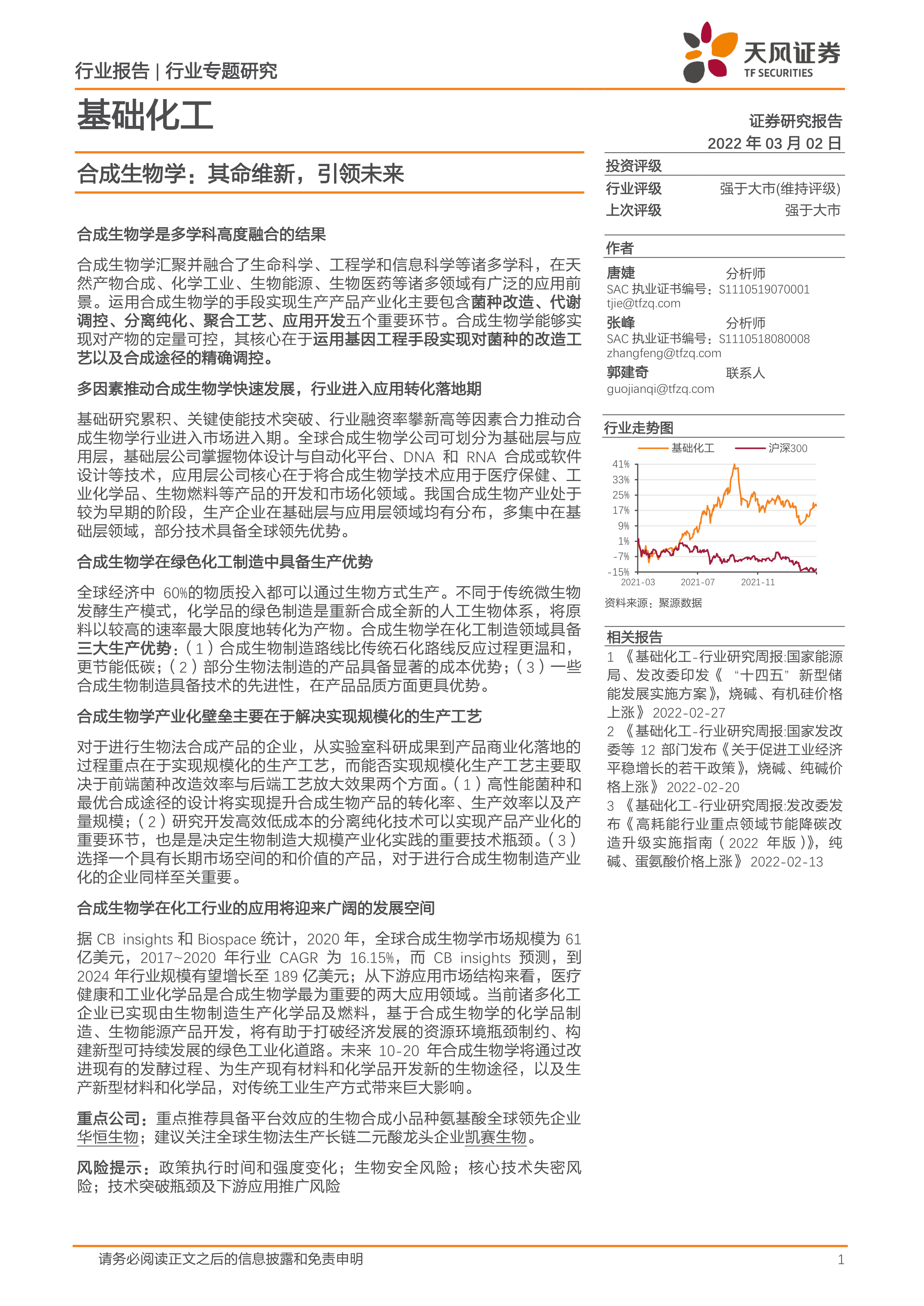 基础化工:合成生物学:其命维新,引领未来