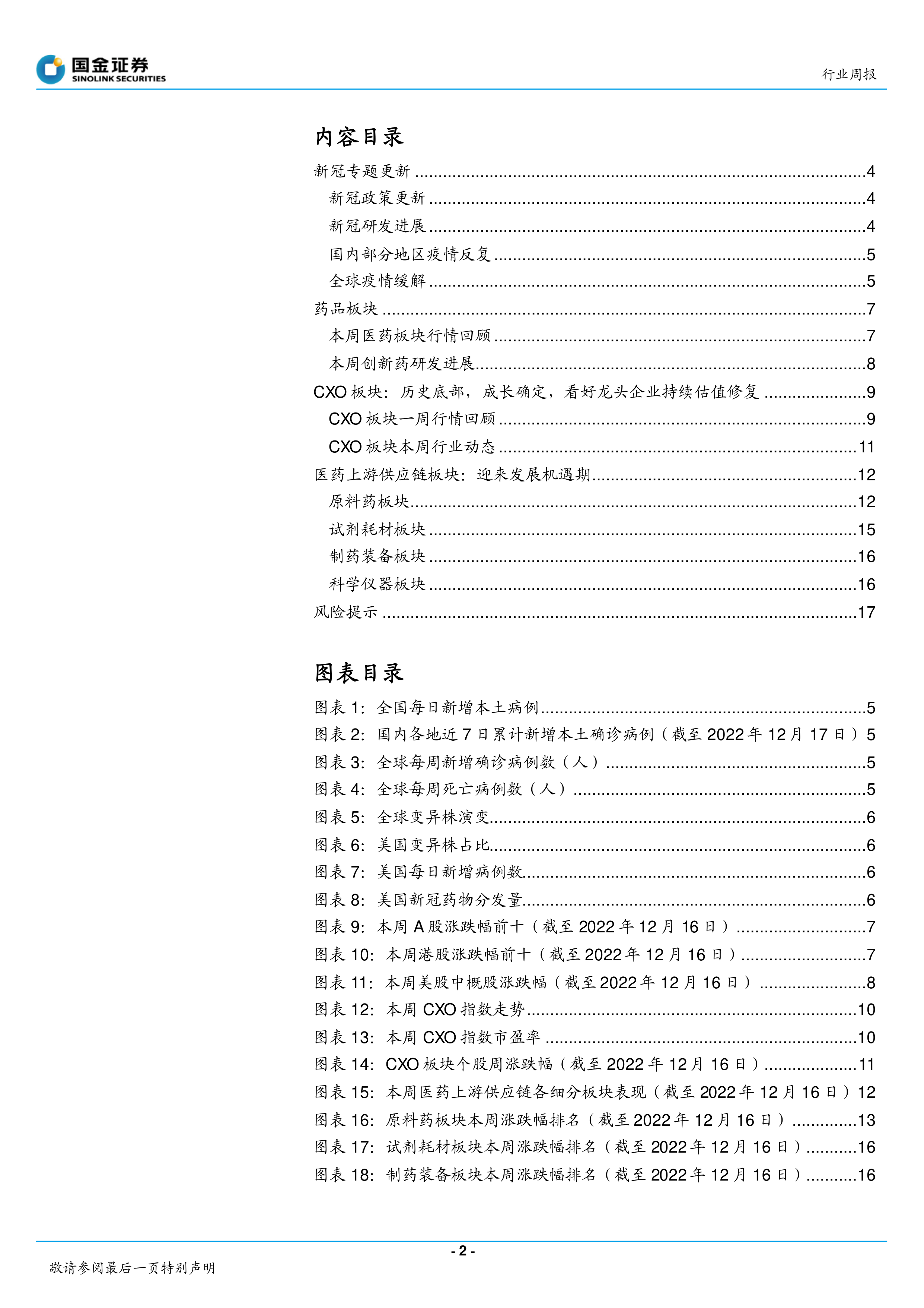 本报告主要从新冠疫情专题更新、药品板块、CXO板块和医药上游供应链板块四个方面展开分析。