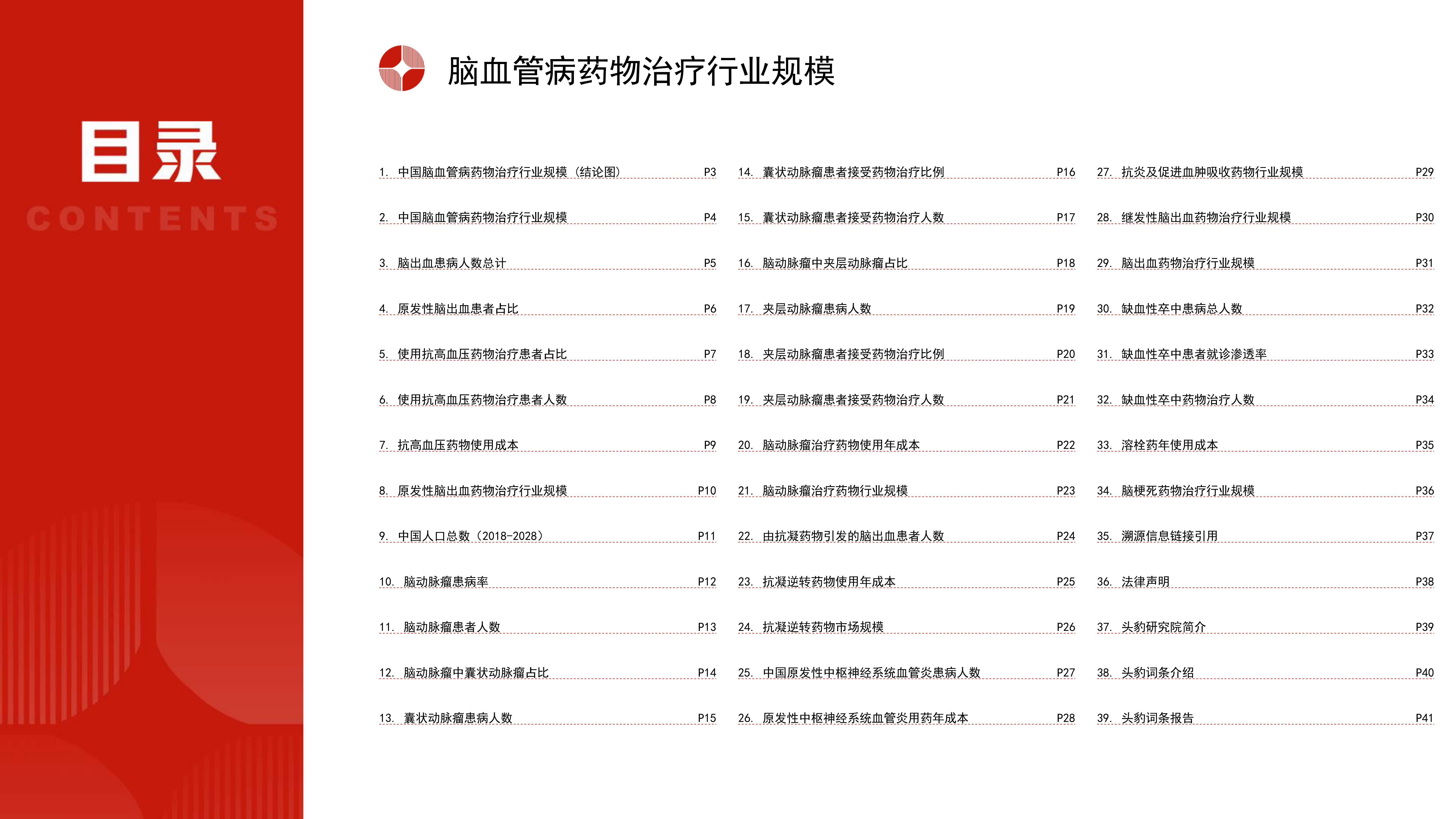 本报告基于头豹研究院发布的《脑血管病药物治疗行业规模测算逻辑模型》报告,利用统计数据和模型分析,对中国脑血管病药物治疗行业市场规模进行深入解读。报告核心观点如下: