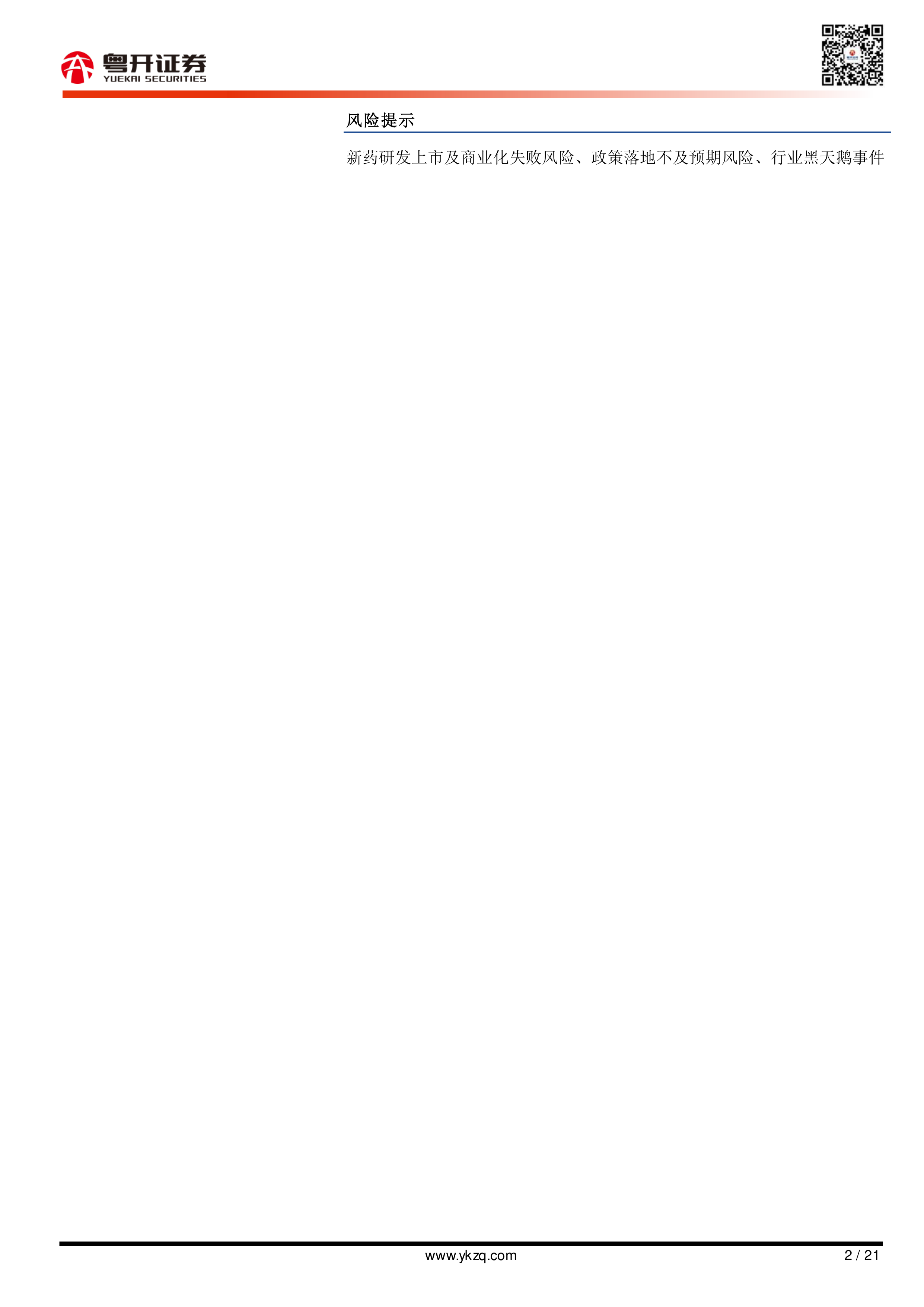 新药研发上市及商业化失败风险、政策落地不及预期风险、行业黑天鹅事件