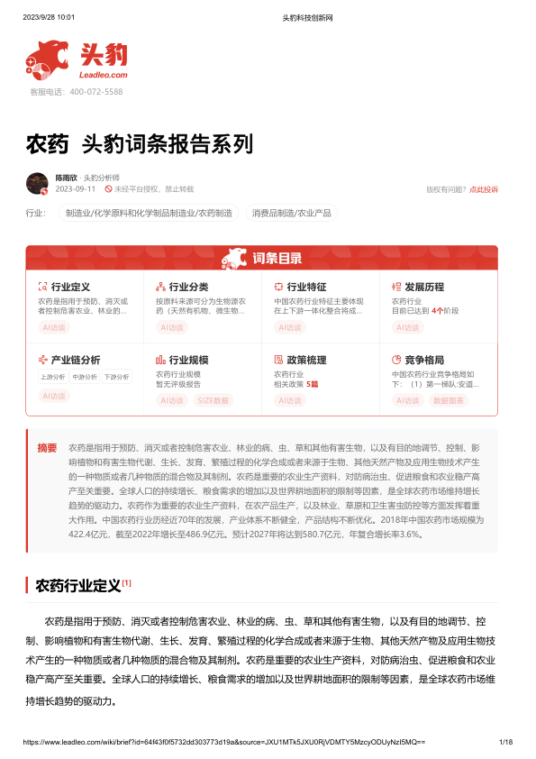 农药 头豹词条报告系列