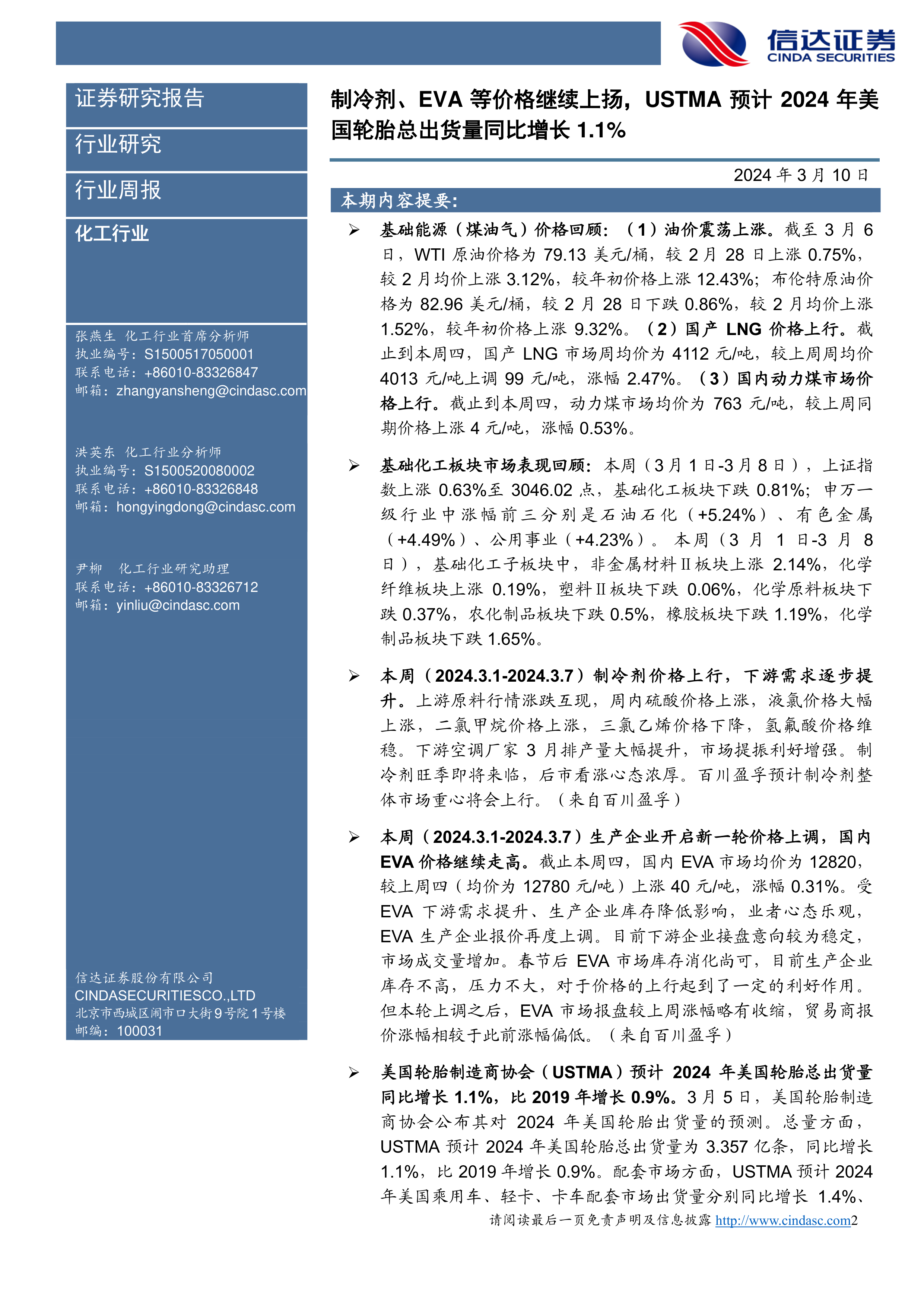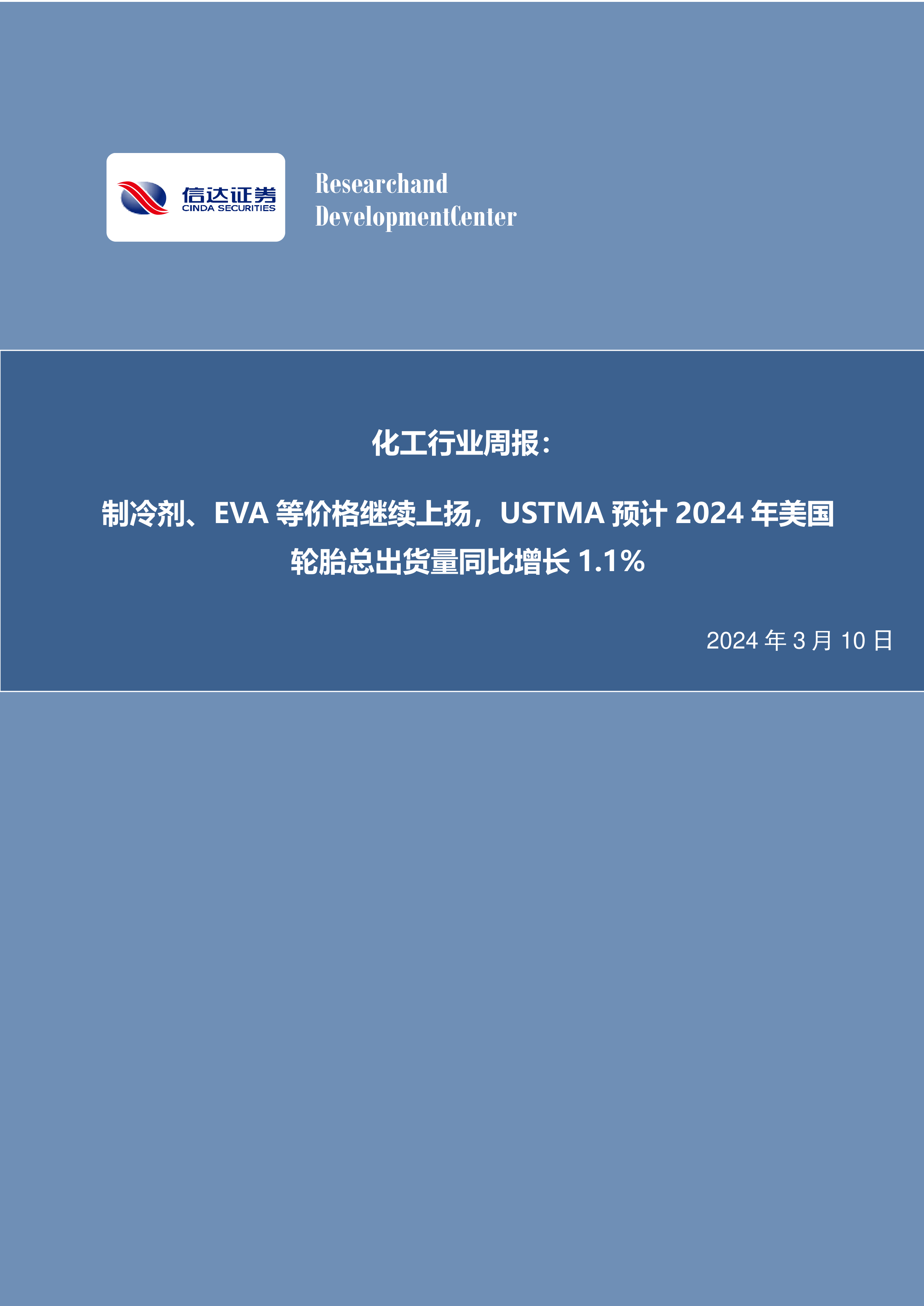 化工行业周报:制冷剂、EVA等价格继续上扬,USTMA预计2024年美国轮胎总出货量同比增长1.1%