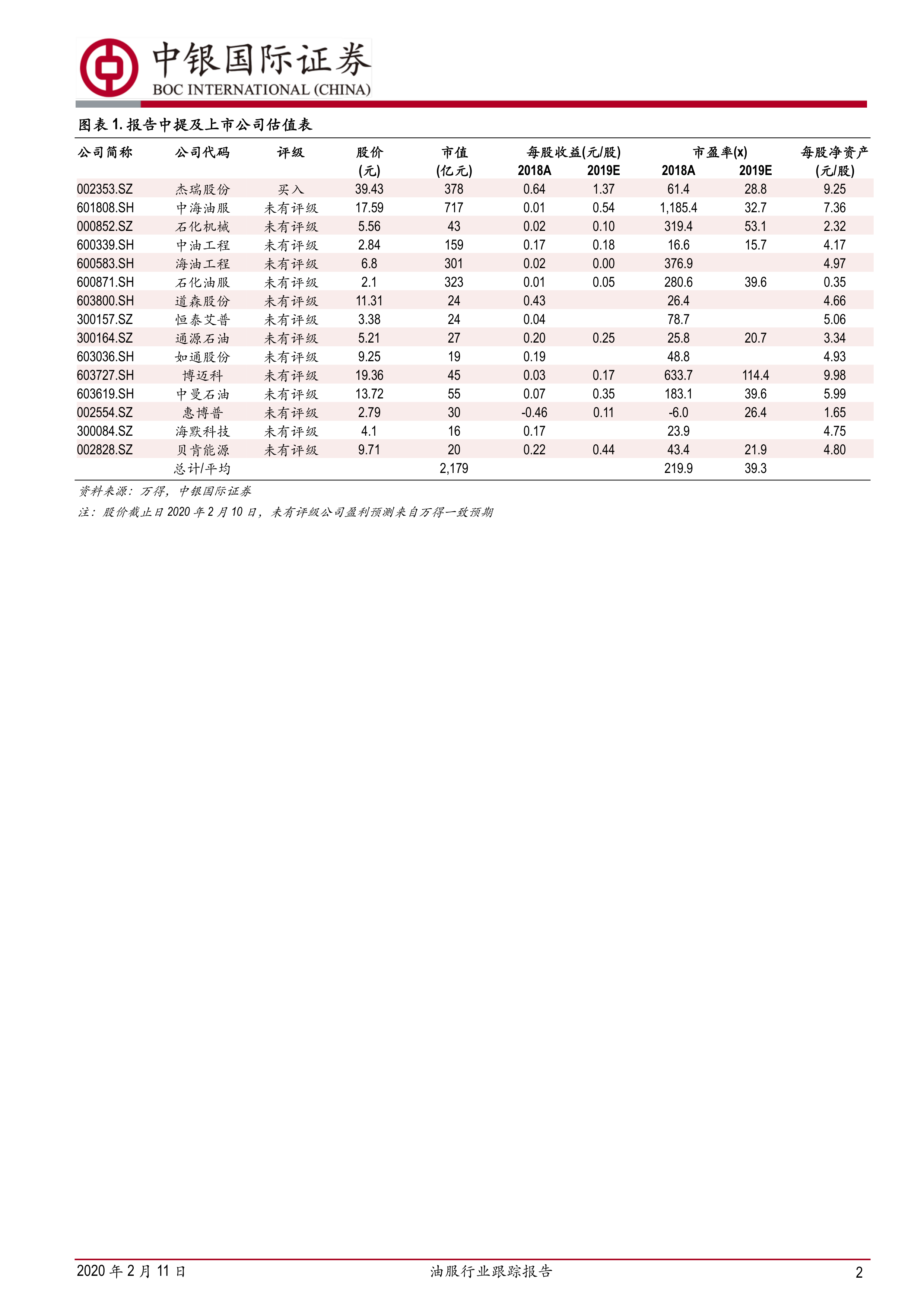 报告还简要提及了石化机械、中油工程、中海油工程、石化油服、道森股份、恒泰艾普、通源石油、如通股份、博迈科、中曼石油、惠博普和海默科技等公司的估值情况,但未给出明确的投资评级。