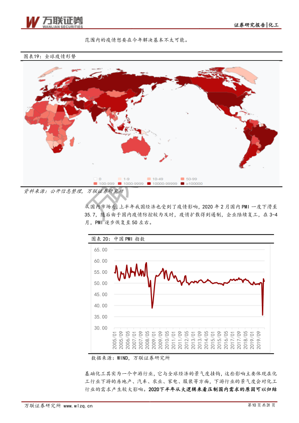 本报告对2020年上半年化工行业市场进行了回顾,并对下半年市场进行了展望。报告认为,化工行业周期性正在钝化,新材料板块将成为行业重点配置方向。报告推荐了三条投资主线,并对重点子行业和上市公司进行了深入分析,提出了相应的投资建议,同时也指出了行业投资的风险。 报告中大量图表数据支持了其分析结论,为投资者提供了较为全面的行业分析和投资参考。 然而,报告也承认存在一些不确定性因素,例如全球疫情的反复和中美关系的演变,这些因素可能会影响报告中提出的投资建议。 投资者在进行投资决策时,应结合自身情况,谨慎考虑各种风险因素。