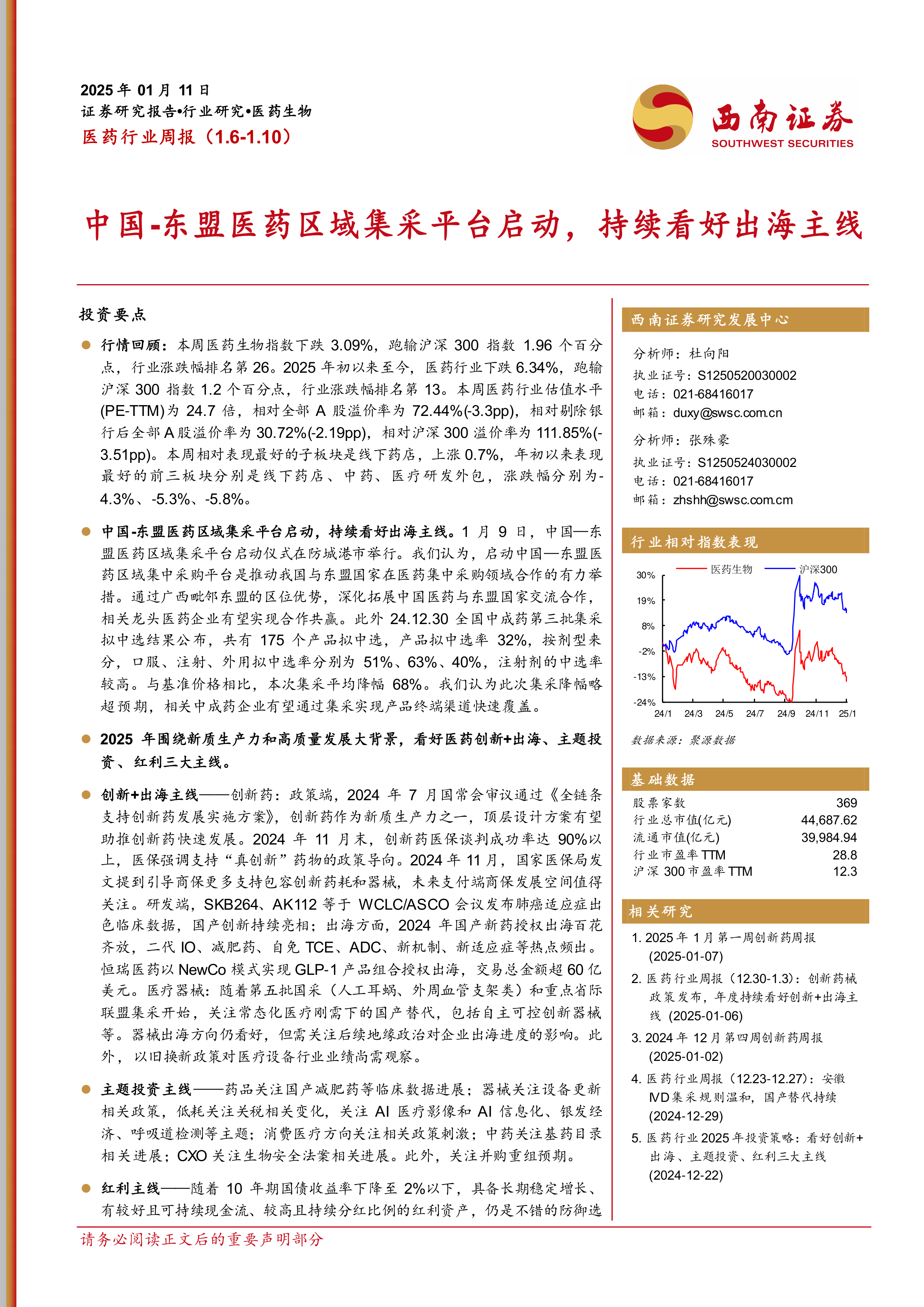 本报告涵盖了医药行业周报(1.6-1.10)的多个方面,包括: