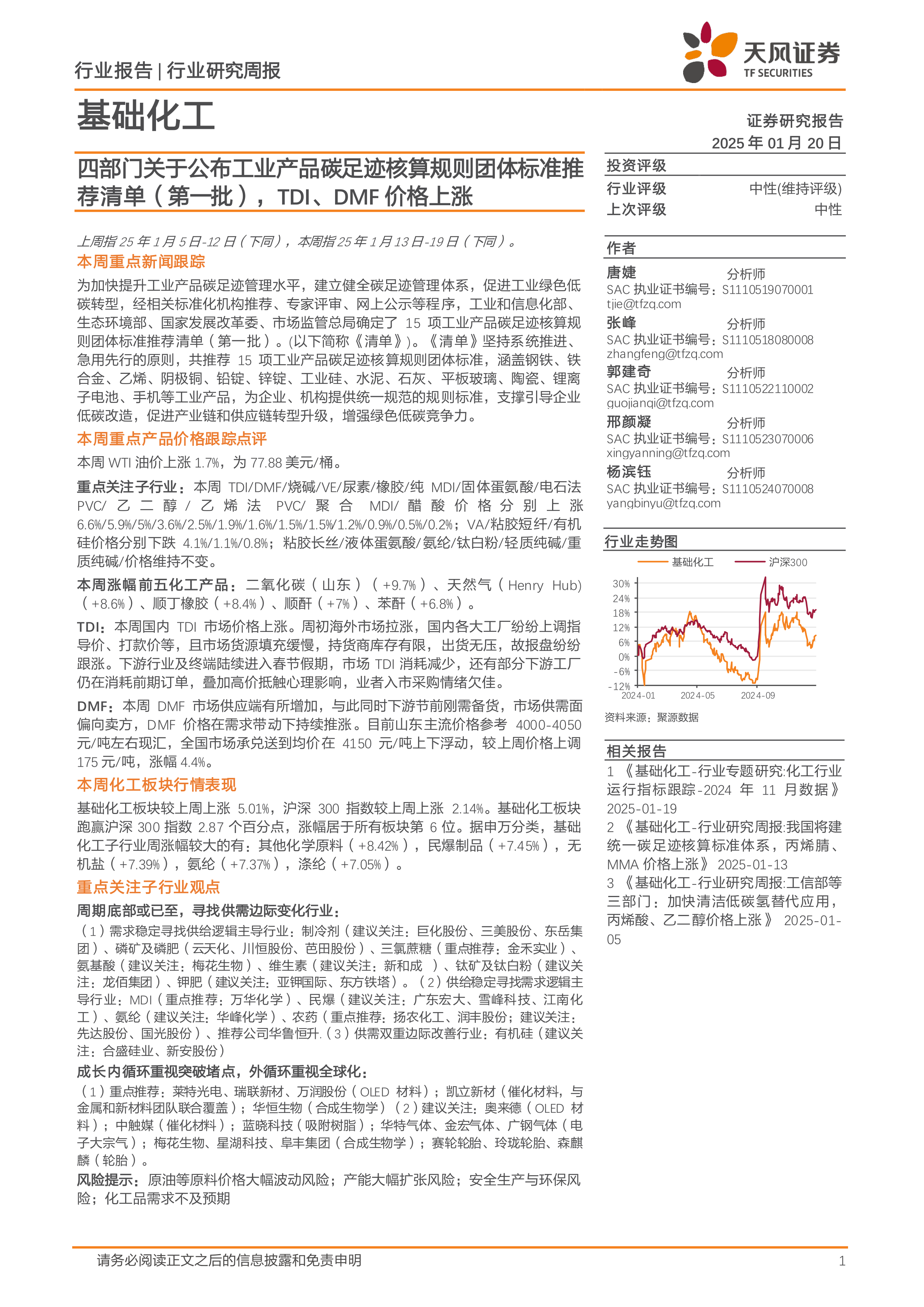 基础化工行业研究周报:四部门关于公布工业产品碳足迹核算规则团体标准推荐清单(第一批),TDI、DMF价格上涨
