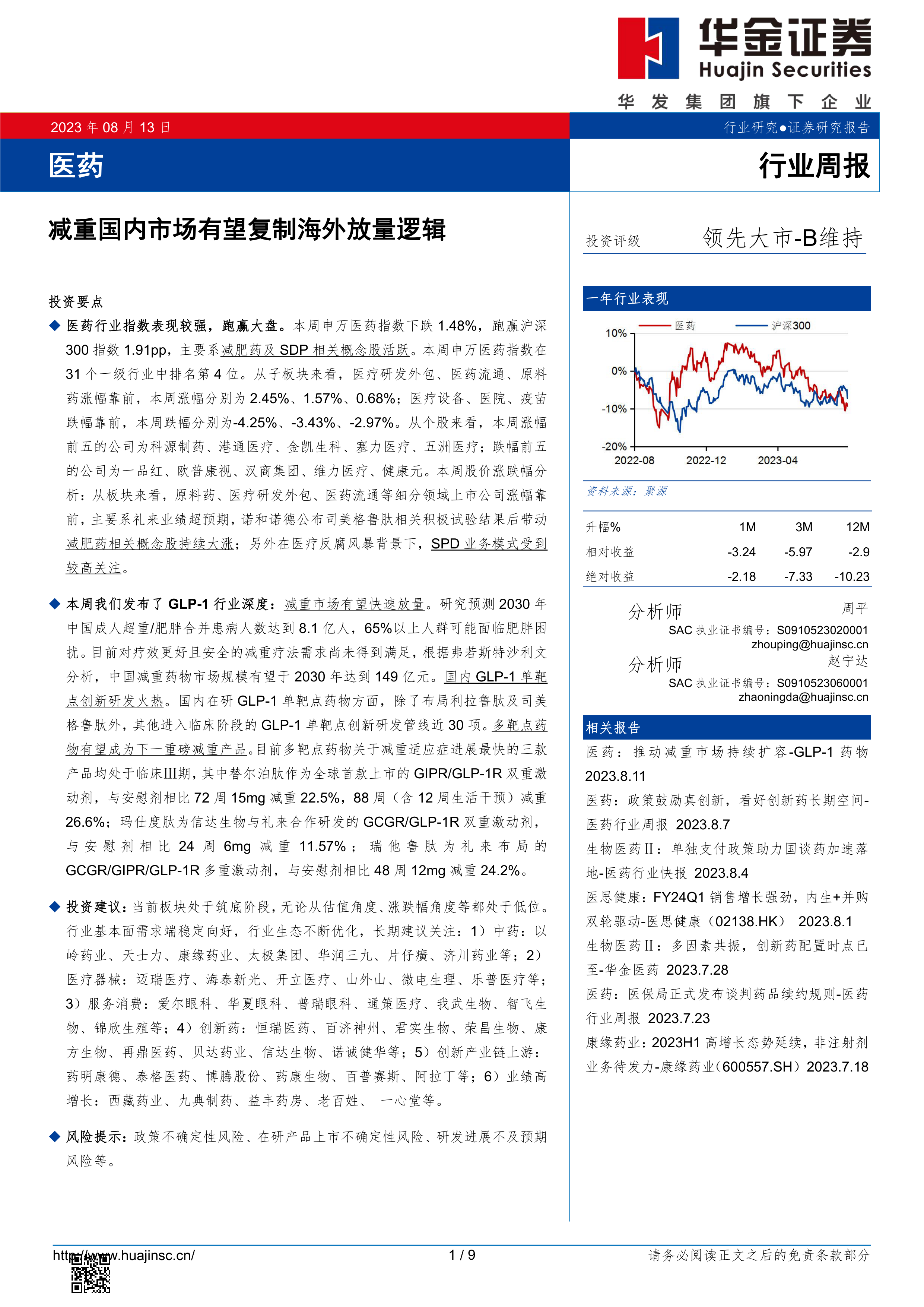 医药行业周报:减重国内市场有望复制海外放量逻辑