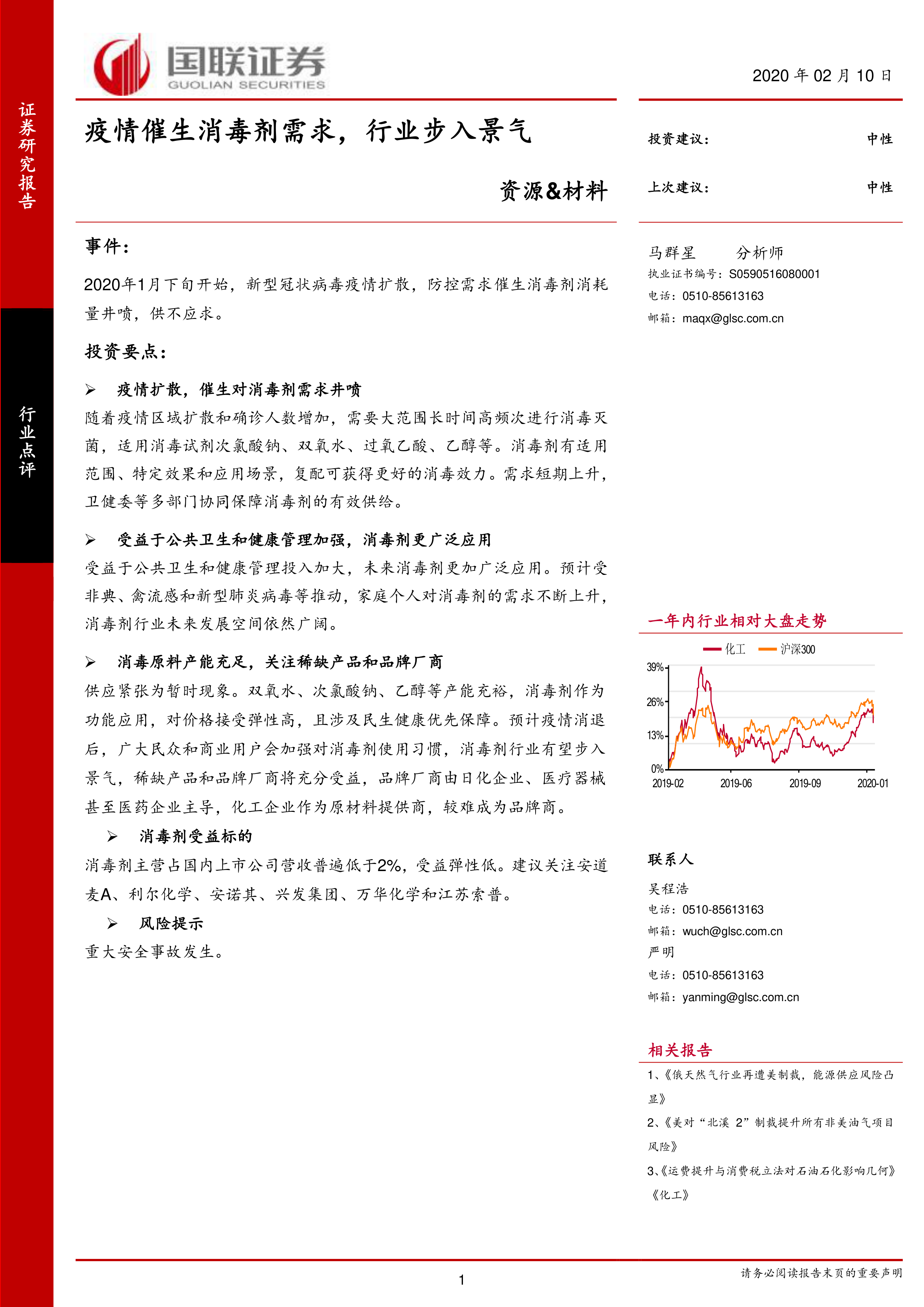 资源&材料:疫情催生消毒剂需求,行业步入景气