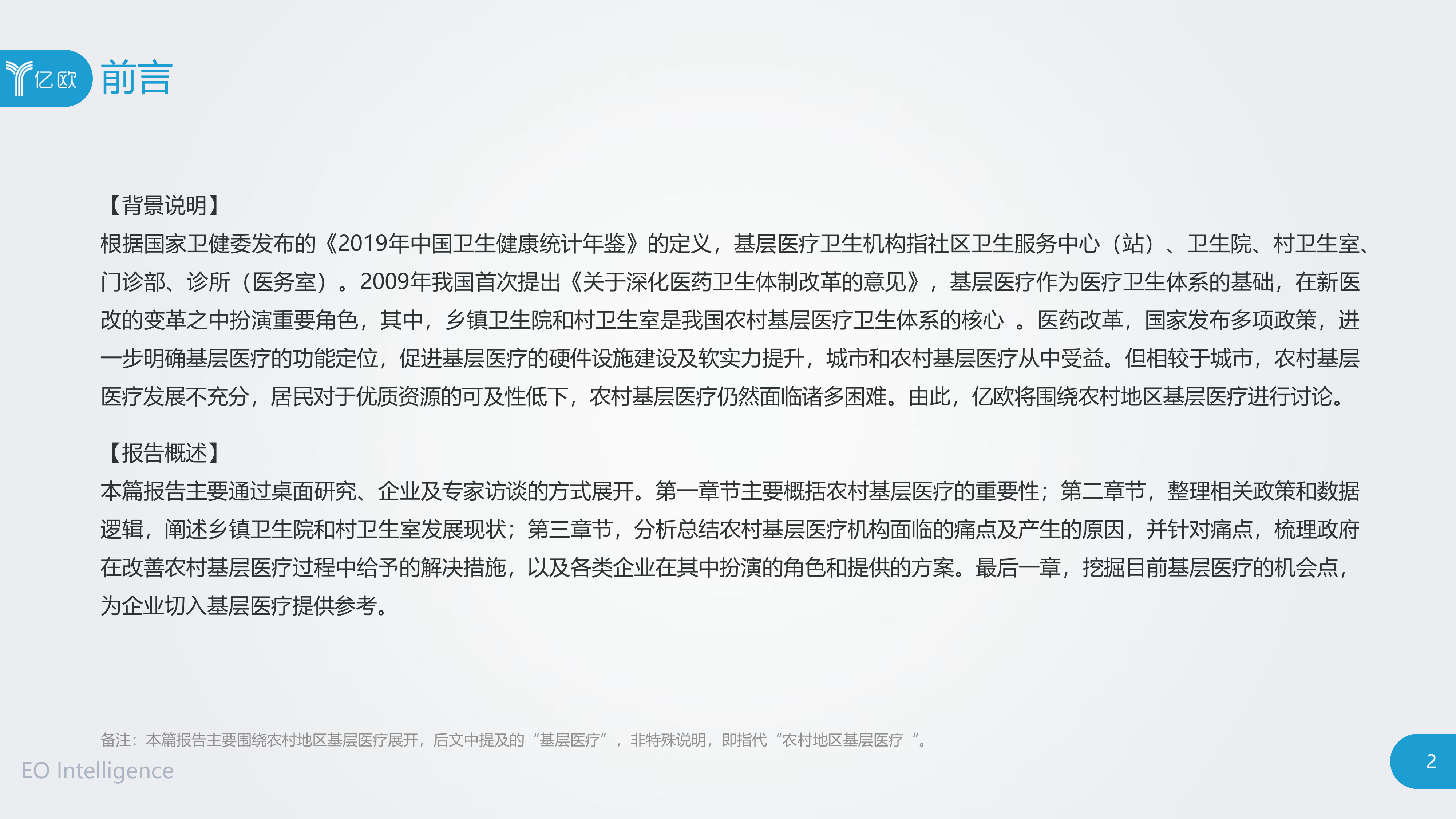 本报告主要关注中国农村地区的基层医疗,包括乡镇卫生院和村卫生室。报告指出,虽然基层医疗机构数量众多,但其规模、功能定位与医院相比存在较大差距,尤其在诊疗能力、检查能力、手术能力和药品供应方面,农村居民获得优质医疗资源的可及性较低。