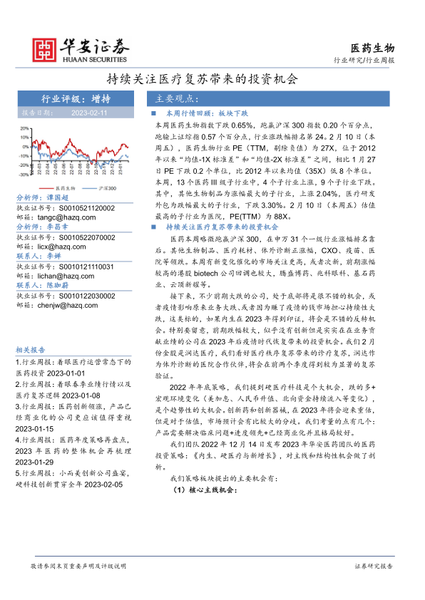 我们团队2022年12月14日发布2023年华安医药团队的医药投资策略:《内生、硬医疗与新增长》,对主线和结构性机会做了剖析。