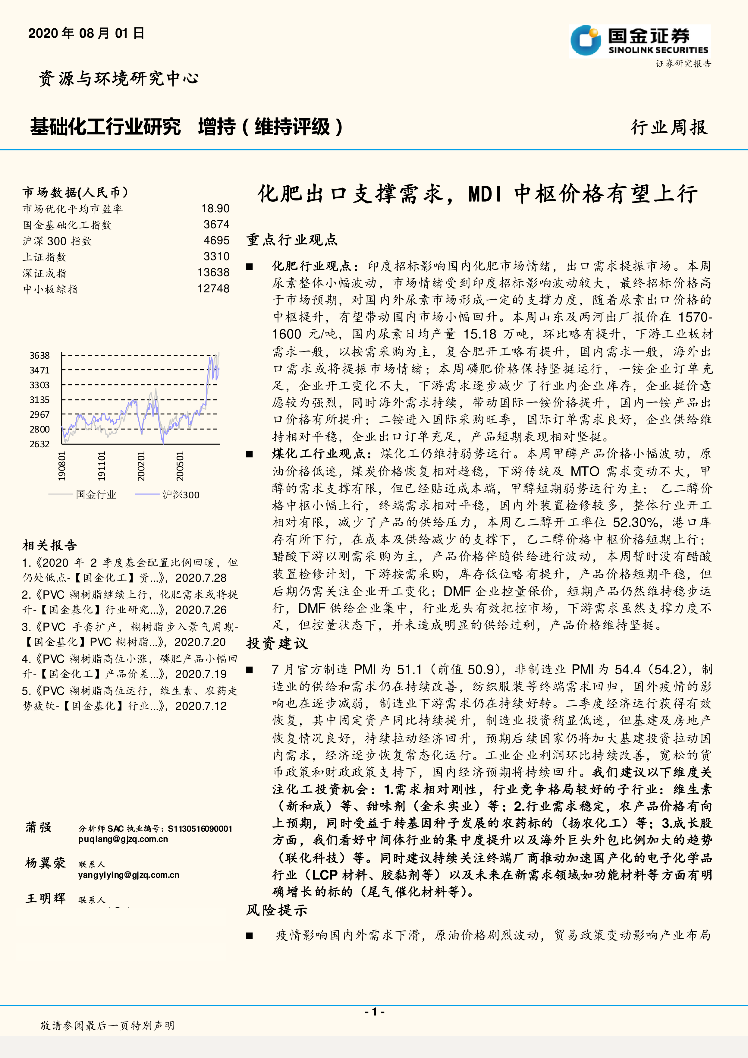 基础化工行业研究:化肥出口支撑需求,MDI中枢价格有望上行