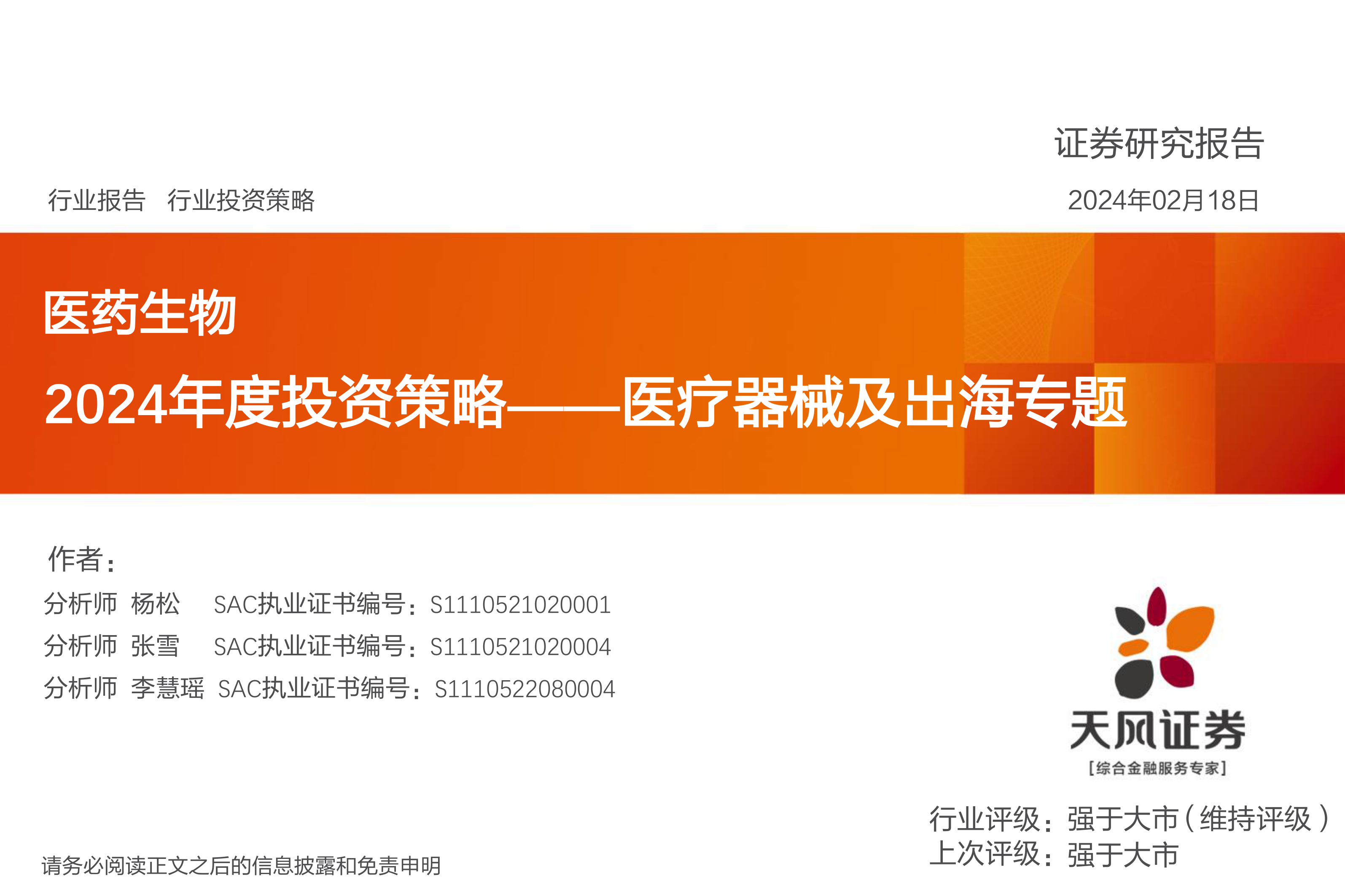 医药生物2024年度投资策略——医疗器械及出海专题