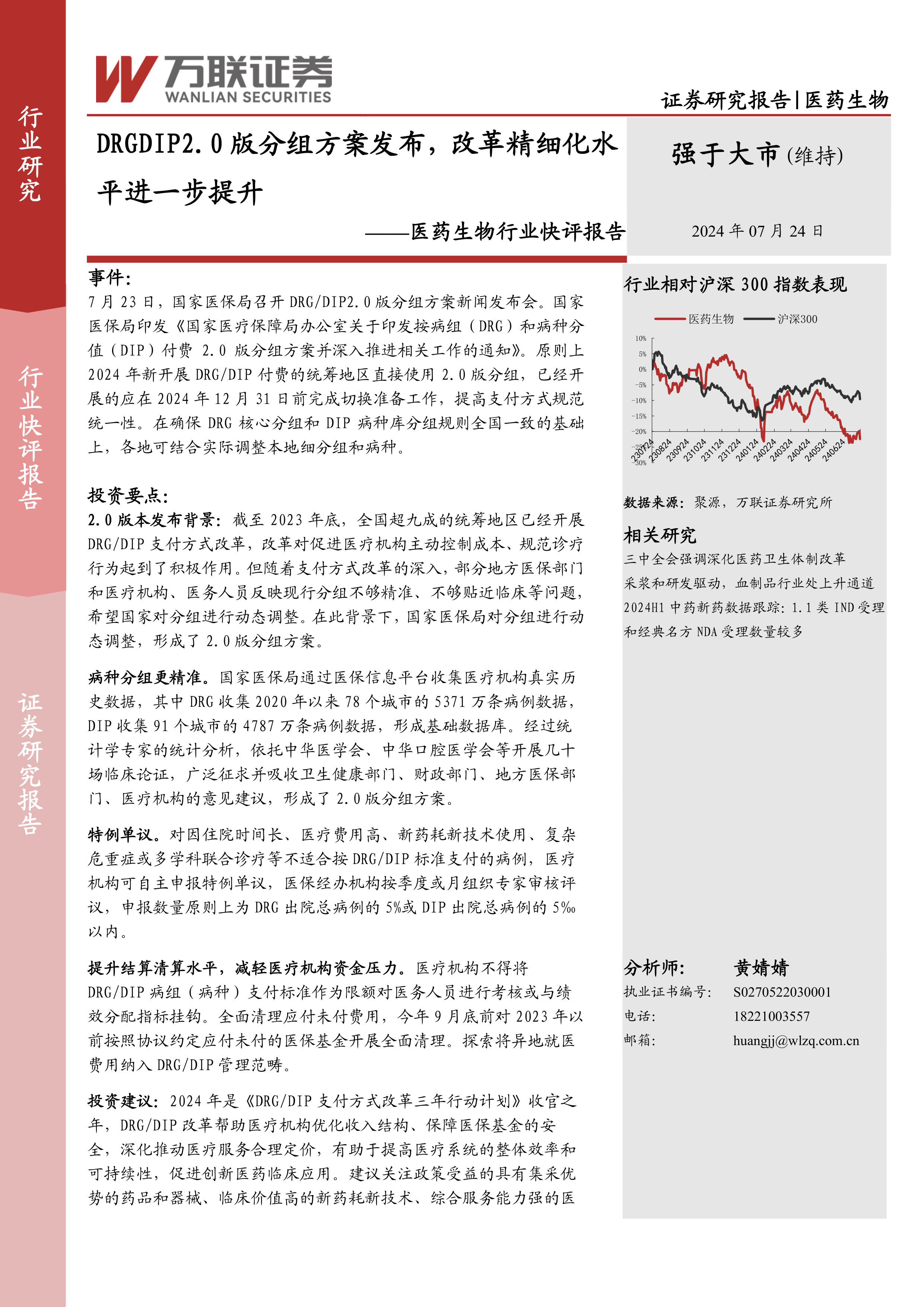 本报告是一份医药生物行业快评报告,主要围绕国家医保局发布的DRG/DIP 2.0版分组方案展开分析。