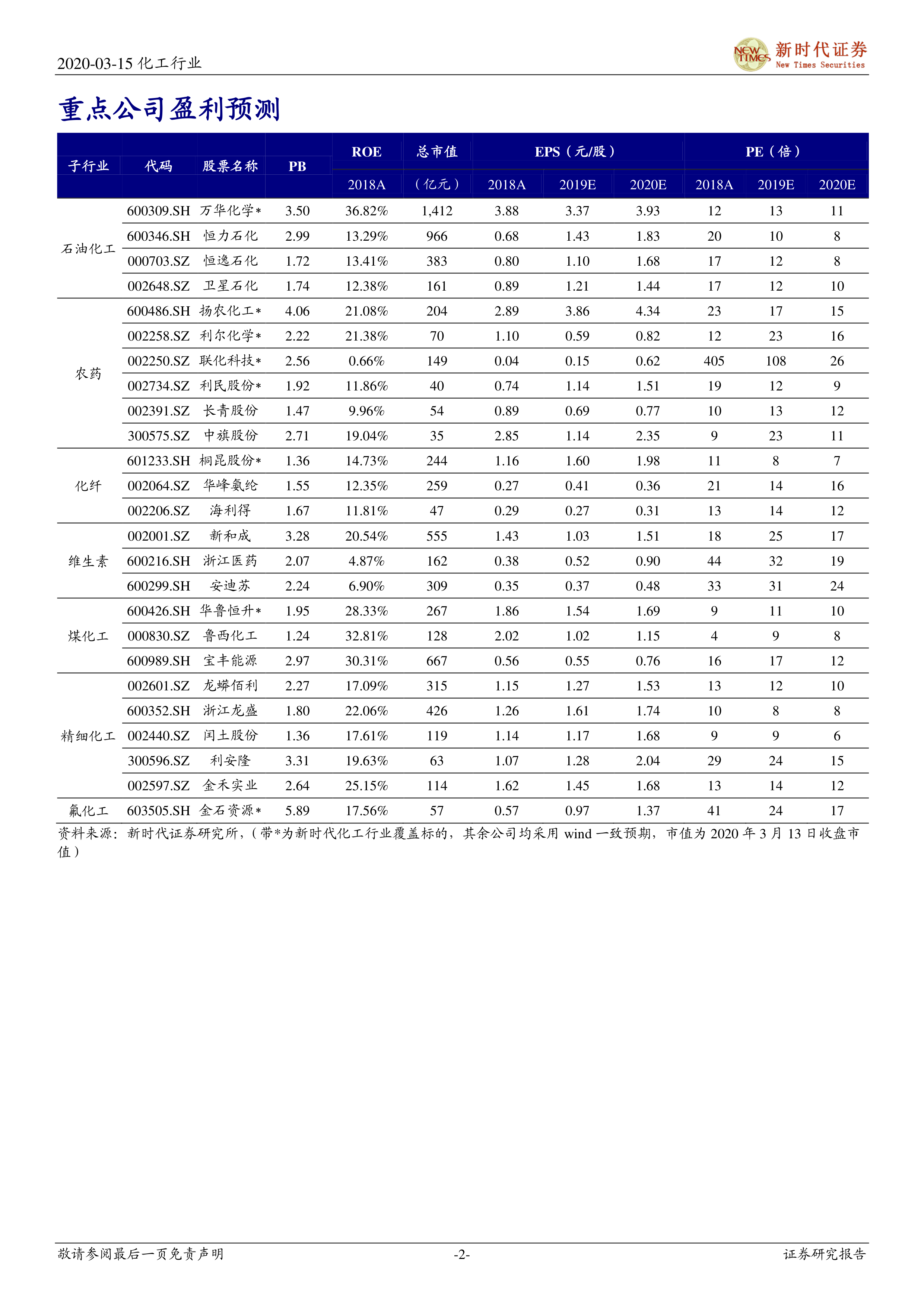 本报告基于2020年3月15日的数据,对化工行业进行了全面的分析。国际油价暴跌和新冠疫情蔓延给化工行业带来了短期冲击,但龙头企业的核心竞争力依然存在。报告建议投资者关注具有长期护城河和自身成长能力强的企业,并密切关注油价和疫情发展对不同化工子行业的影响。 同时,报告也提示了投资者需要注意环保政策、下游需求以及国际贸易关系等风险因素。 对具体化工产品的分析,则揭示了不同产品在供需关系和价格波动上的差异,为投资者提供了更细致的投资参考。