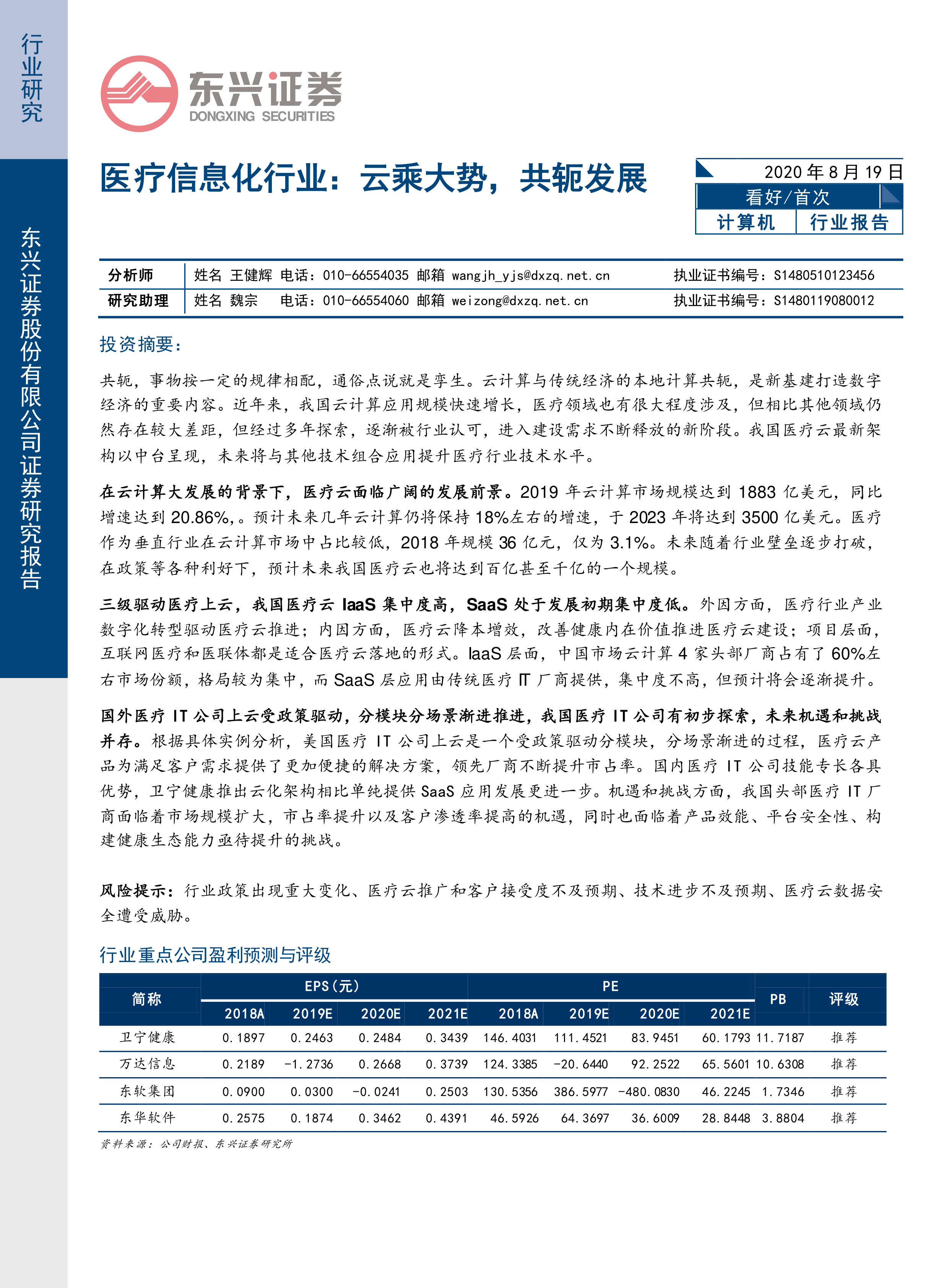 报告分别介绍了东华软件、卫宁健康、万达信息和东软集团等国内医疗信息化公司在云化转型方面的产品、服务模式和战略布局。