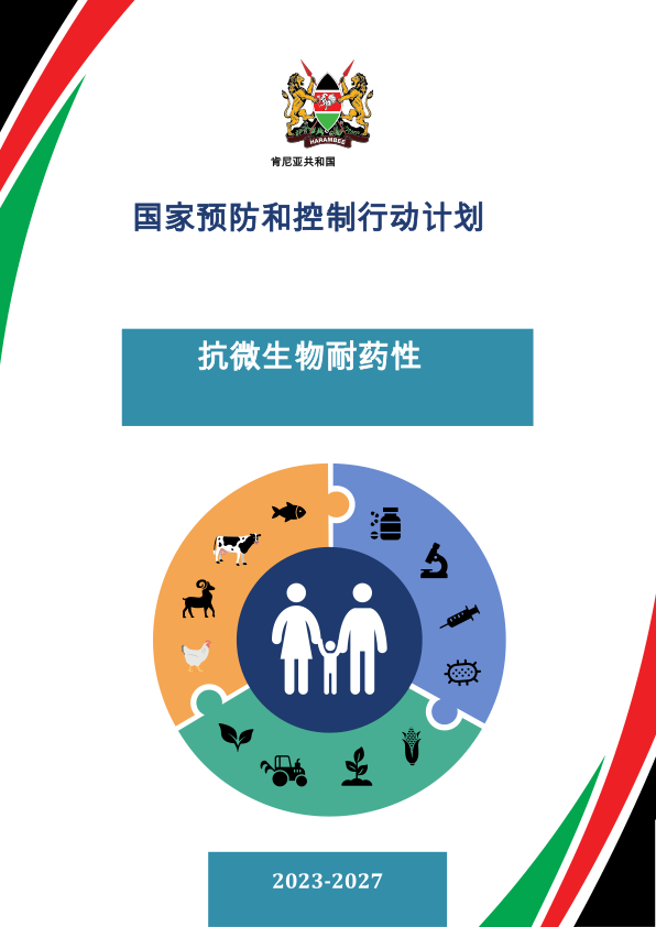 肯尼亚共和国《2023-2027年抗微生物耐药性国家行动计划》(NAP 2.0)旨在通过多部门合作,应对日益严重的抗微生物耐药性(AMR)问题。该计划的核心目标是:加强治理和协调机制;提高公众对AMR的认识;加强监测和研究;降低感染发生率;优化抗菌药物的使用;以及增加对新型药物、诊断工具和疫苗的投资。计划中详细阐述了具体的战略干预措施、活动、责任和时间表,并通过监测与评估框架进行评估。