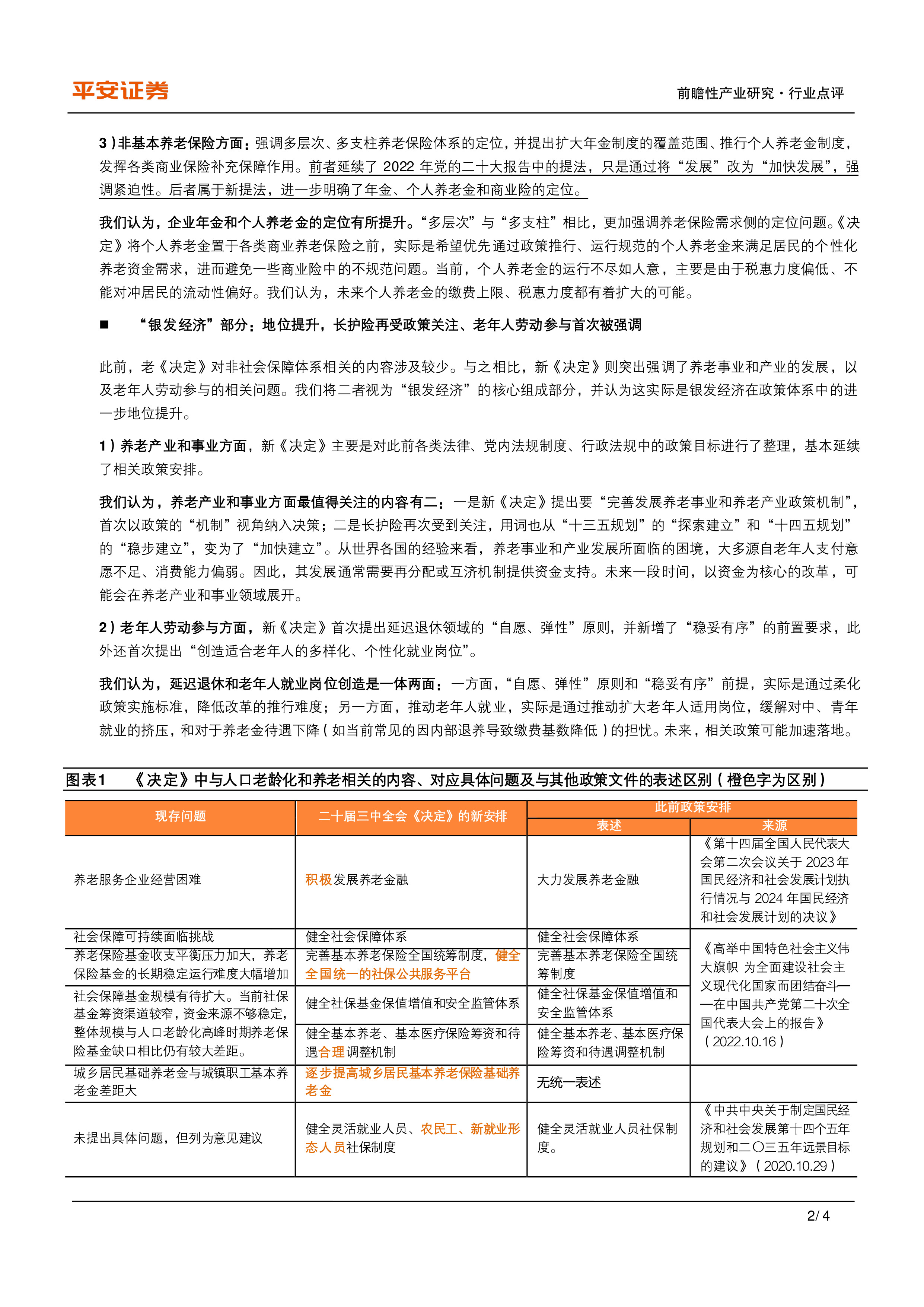 报告还分析了《决定》中关于银发经济发展的内容,主要包括: