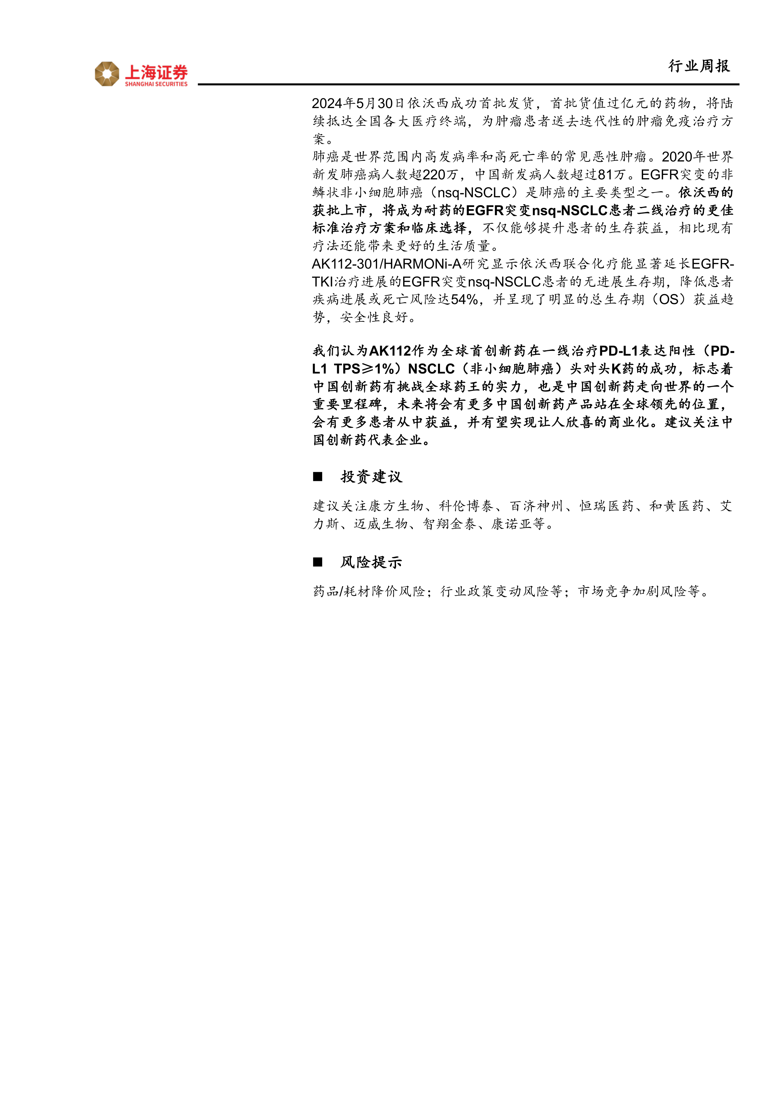 医药生物行业周报:康方AK112头对头“药王”K药成功,获批上市放量可期