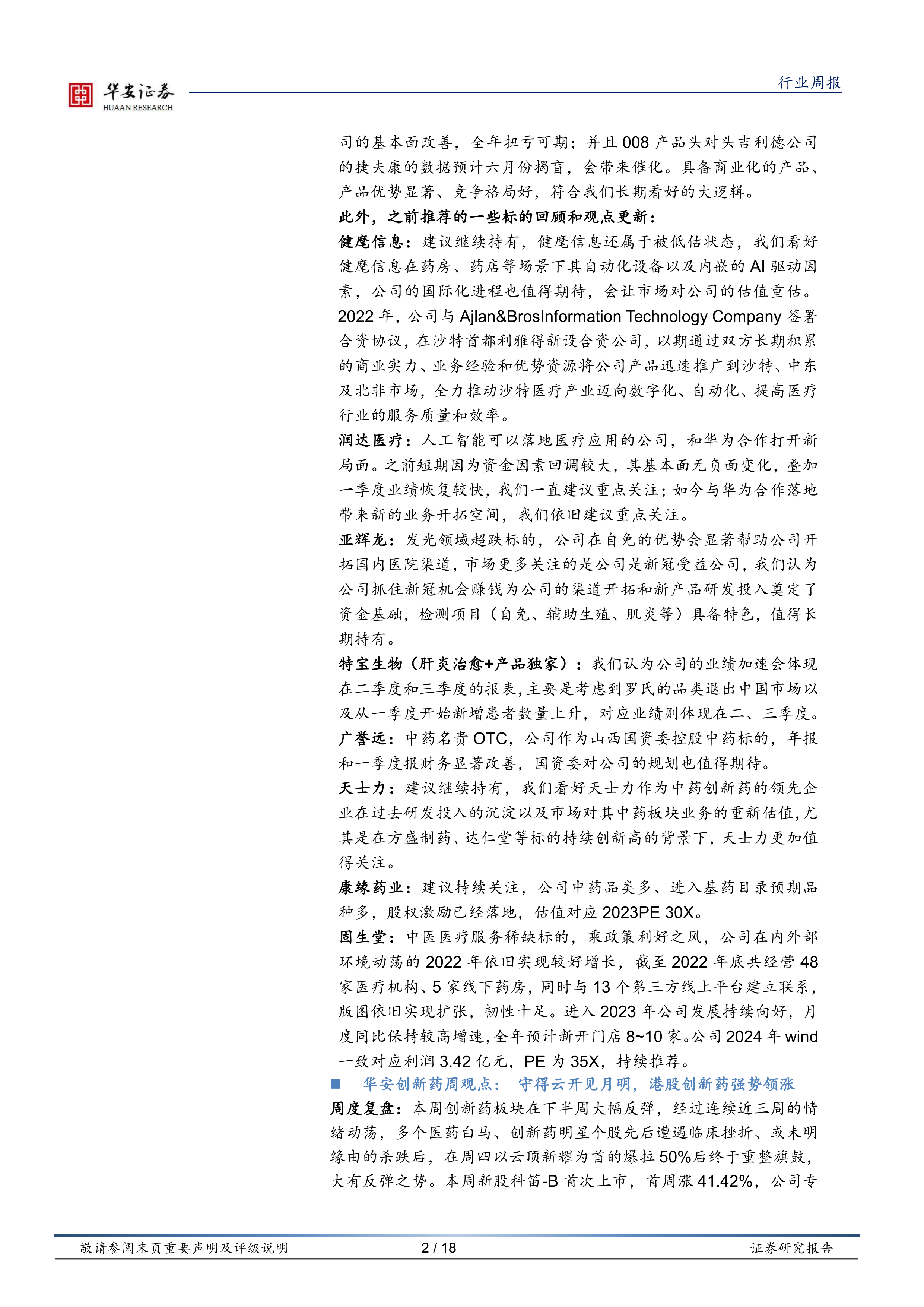 华安创新药周观点:守得云开见月明,港股创新药强势领涨