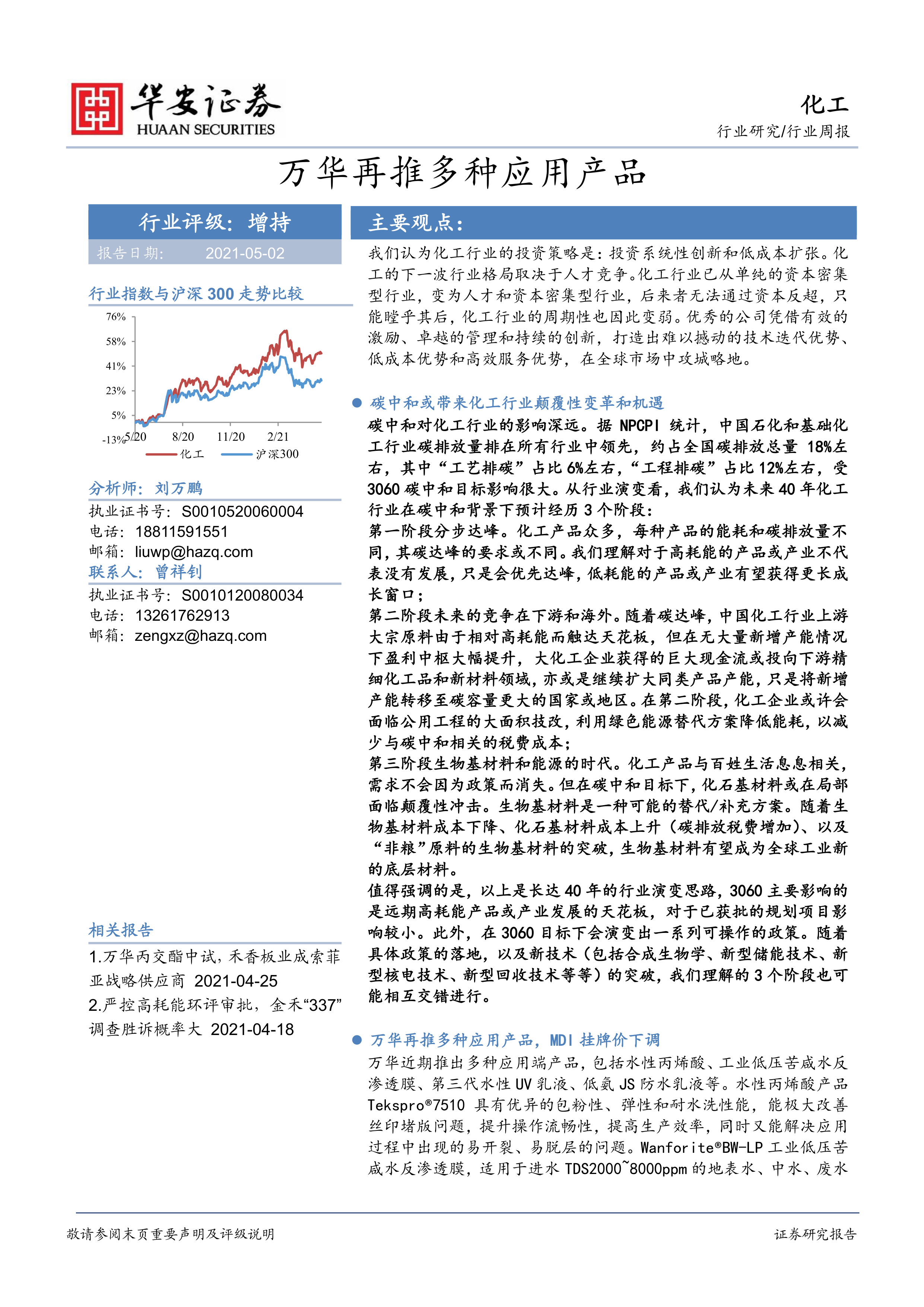 化工行业周报:万华再推多种应用产品