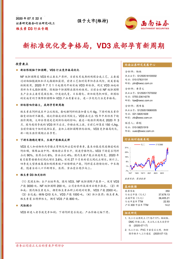 维生素D3行业专题:新标准优化竞争格局,VD3底部孕育新周期