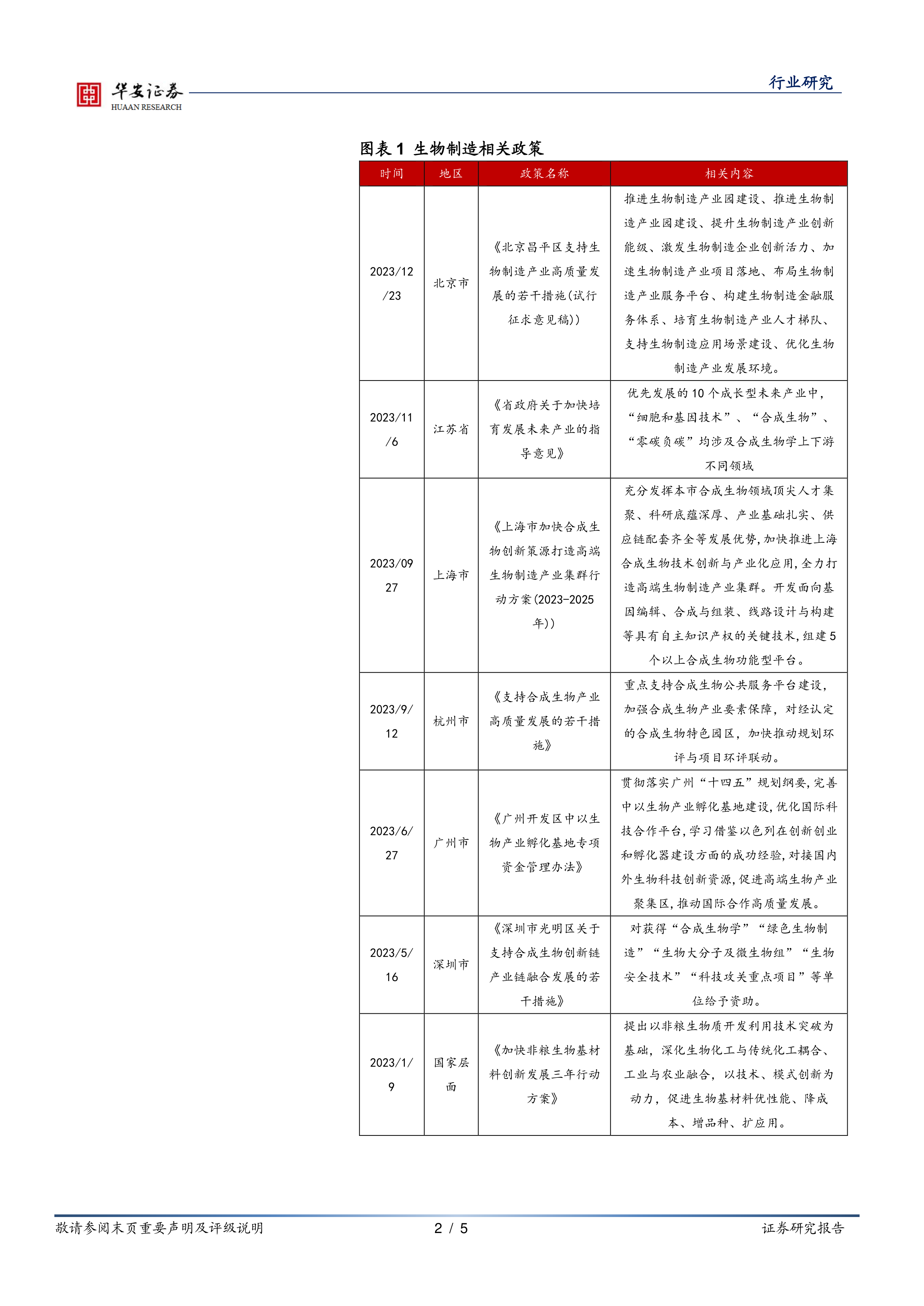 国家及地方层面政策频繁落地,生物制造产业化有望加速