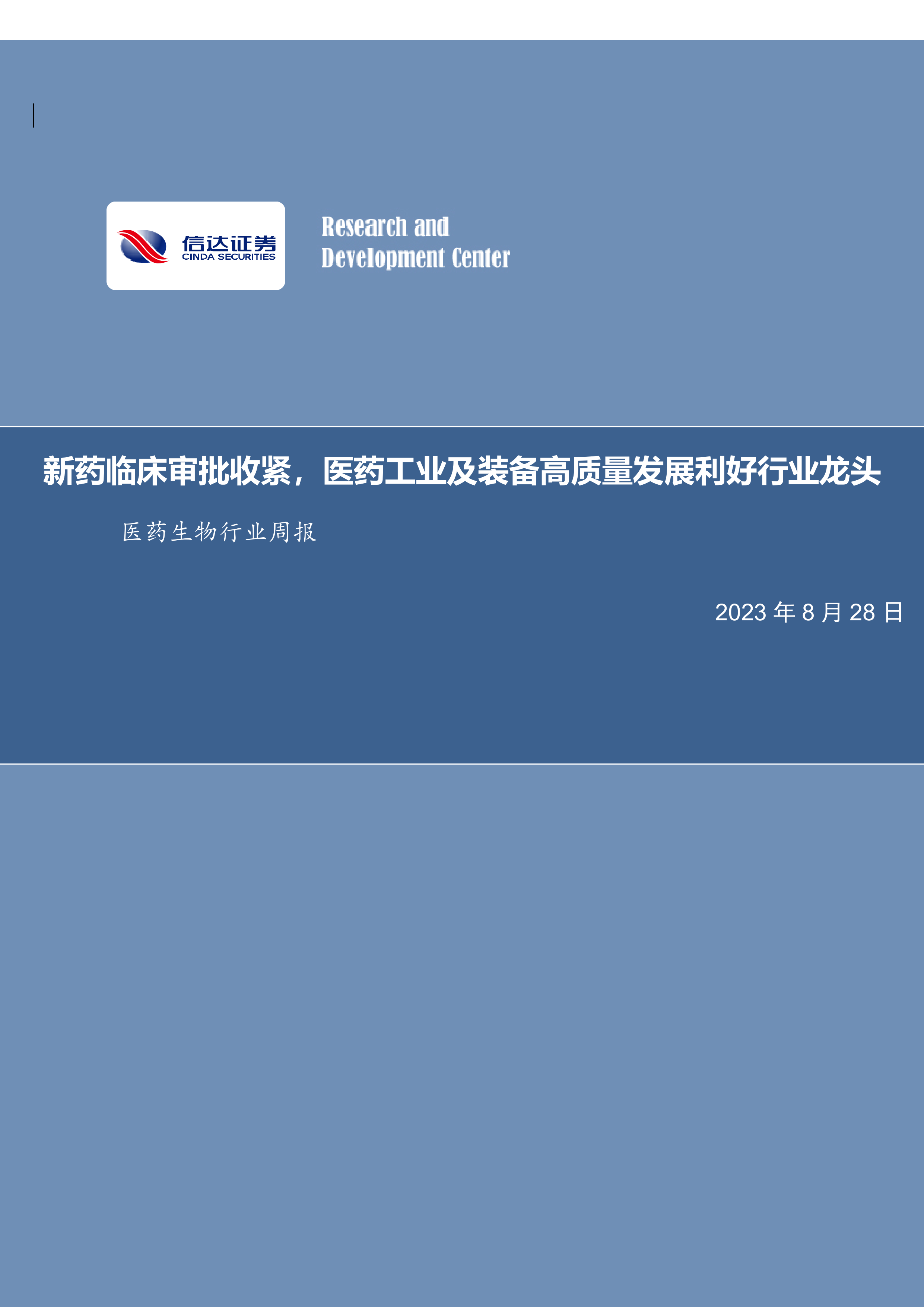 医药生物行业周报:新药临床审批收紧,医药工业及装备高质量发展利好行业龙头