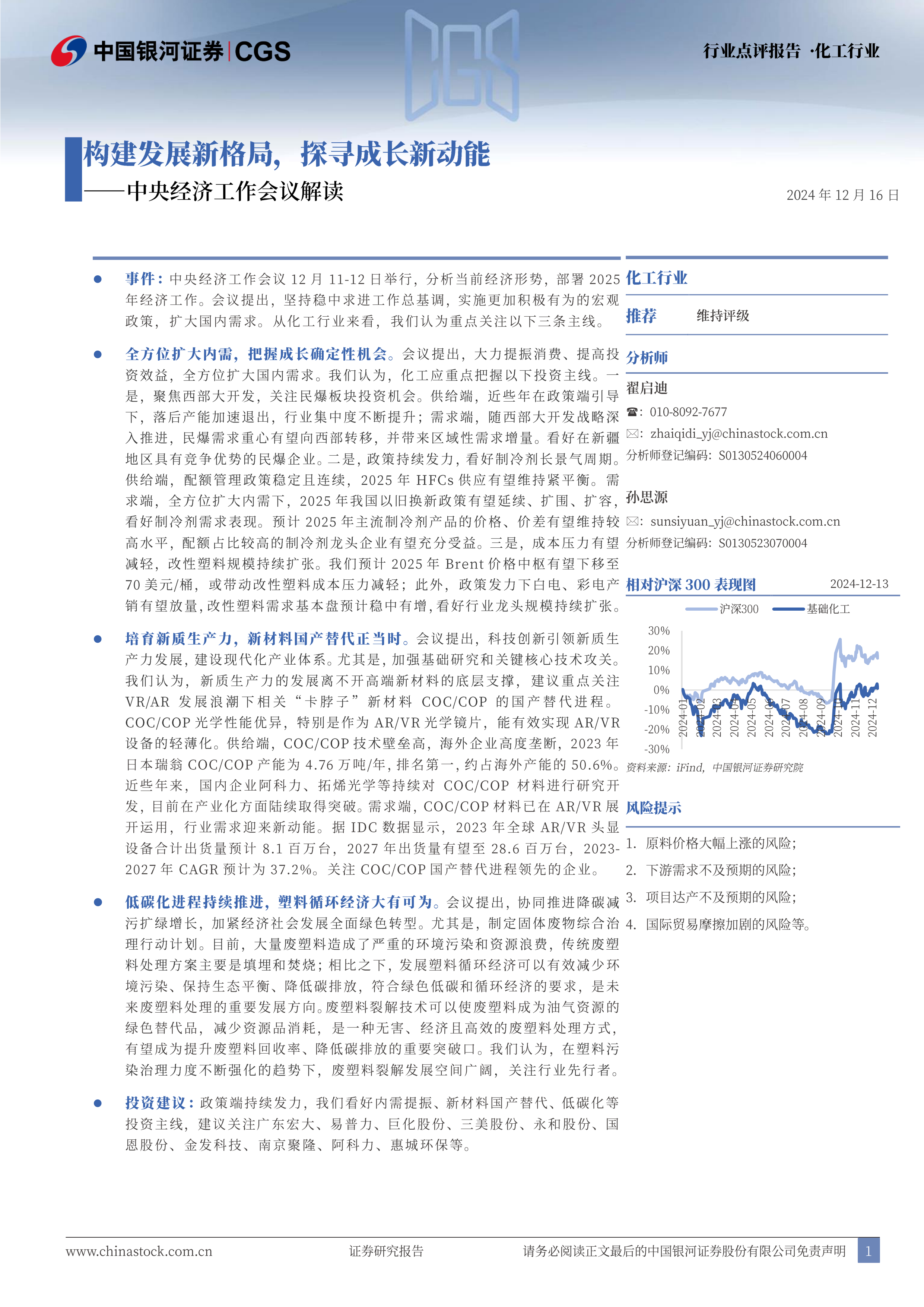 事件:中央经济工作会议12月11-12日举行,分析当前经济形势,部署2025年经济工作。会议提出,坚持稳中求进工作总基调,实施更加积极有为的宏观政策,扩大国内需求。从化工行业来看,我们认为重点关注以下三条主线。