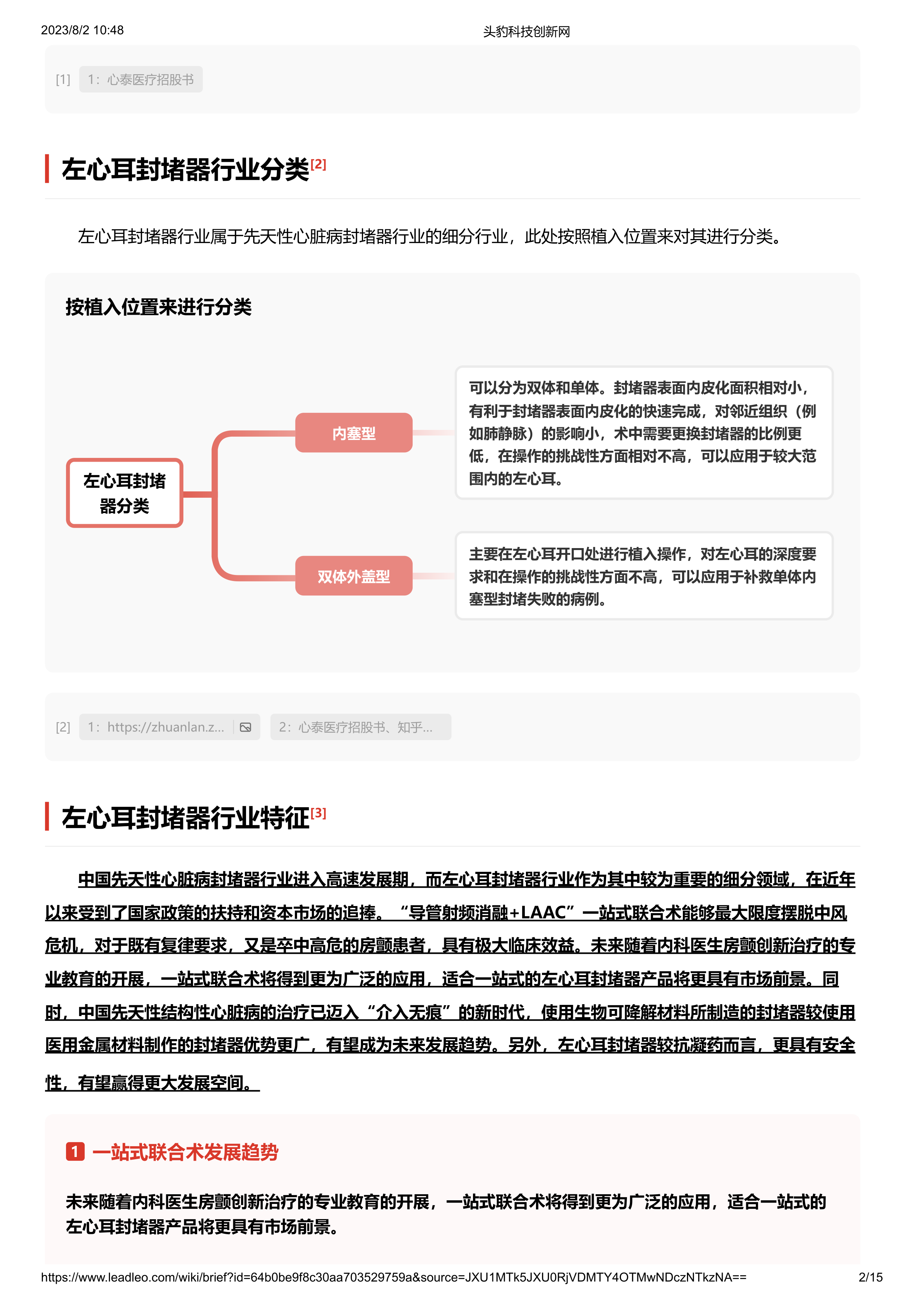 本报告基于头豹科技创新网提供的左心耳封堵器行业报告数据,对中国左心耳封堵器市场进行分析。报告核心观点如下: