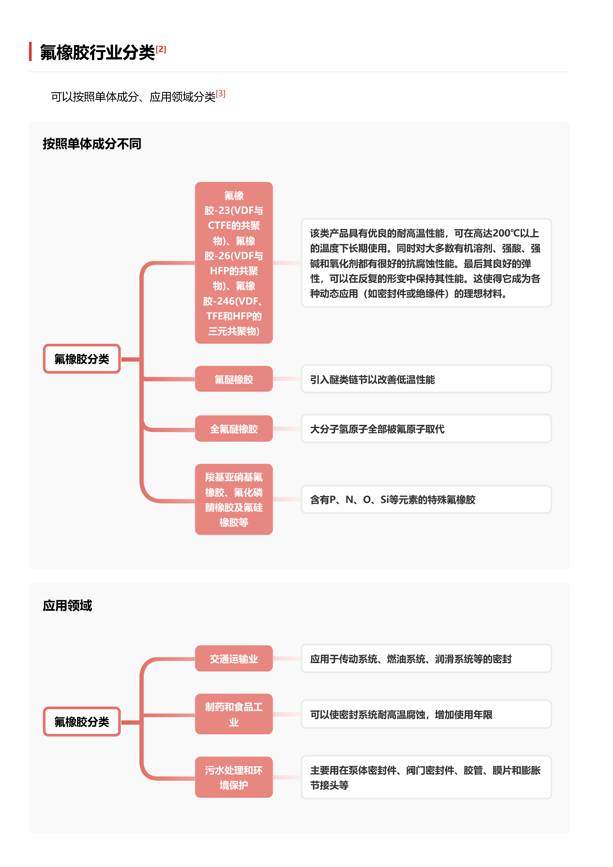 氟橡胶是具有良好的力学性能、耐油和化学药品腐蚀性能、耐候性能、耐高温性能和抗辐射性能的高性能橡胶在高技术领域有诸多应用。中国氟橡胶行业于上世纪六十年代起步,九十年代开始大幅发展,如今已形成六千万到八千万人民币的市场规模。当前中国氟橡胶产业一方面增加研发力度,一方面积极与国外先进企业合作,正逐步向高端氟橡胶产品领域进军