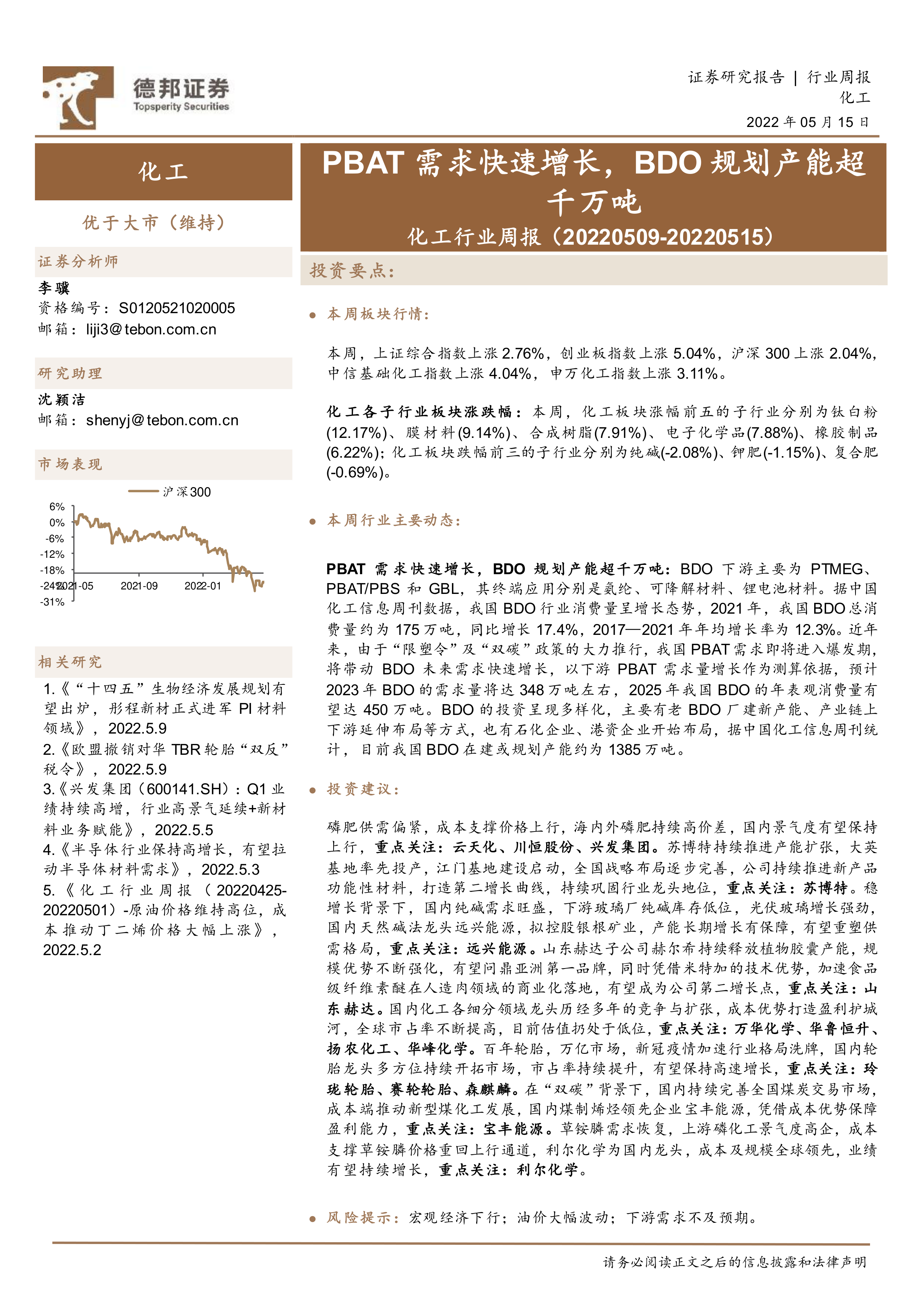 化工行业周报:PBAT需求快速增长,BDO规划产能超千万吨