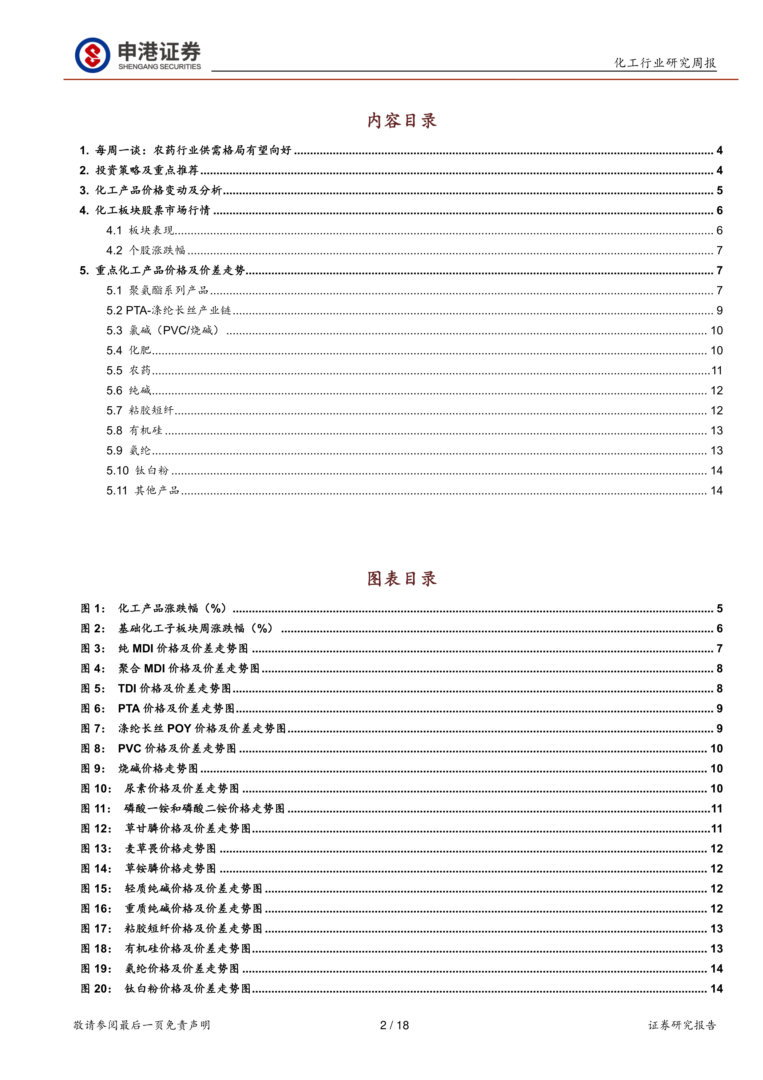 报告对聚氨酯系列产品(纯MDI、聚合MDI、TDI)、PTA-涤纶长丝产业链、氯碱(PVC/烧碱)、化肥(尿素、磷酸一铵、磷酸二铵)、农药(草甘膦、麦草畏、草铵膦)、纯碱、粘胶短纤、有机硅、氨纶、钛白粉以及其他一些化工产品(丁二烯、丁苯橡胶、苯胺、纯苯、甲醇、醋酸、己二酸、丁辛醇)的价格及价差走势进行了详细的图表和文字分析,并对未来走势进行了预测。 分析涵盖了供需关系、成本变化、市场情绪等多个方面。