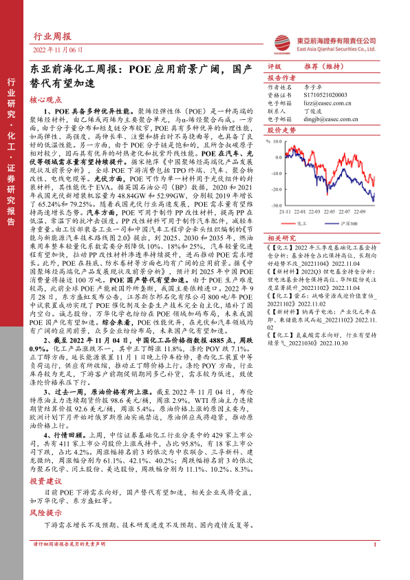 东亚前海化工周报:POE应用前景广阔,国产替代有望加速
