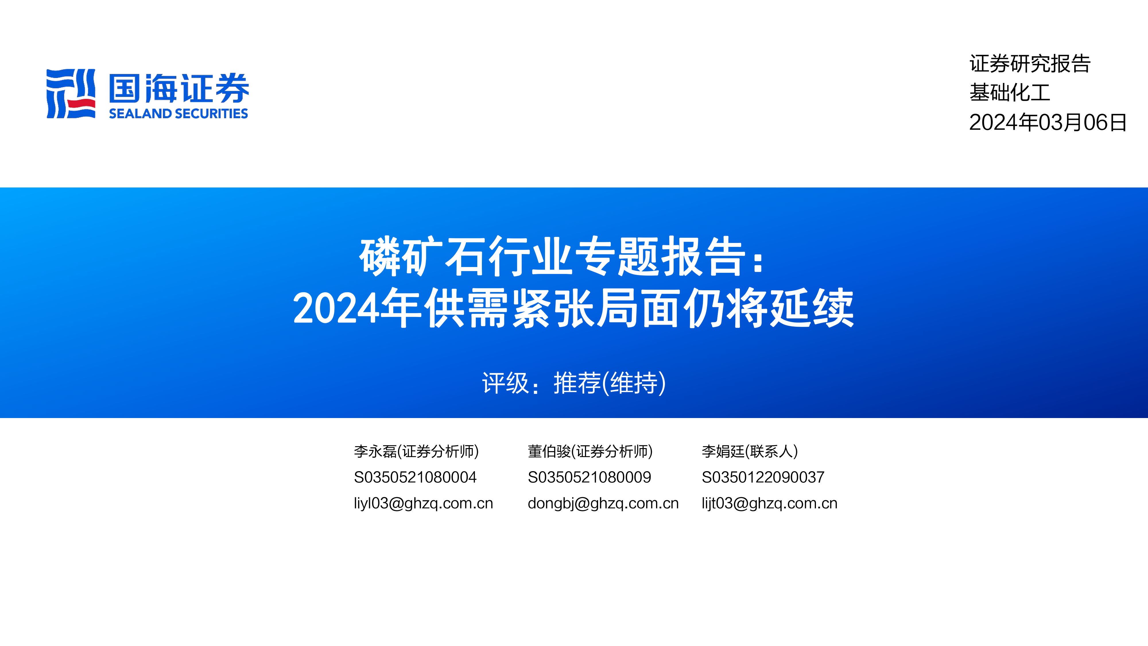 本报告从供给端、需求端及行业投资策略三个方面对磷矿石行业进行分析,并对重点公司进行盈利预测。