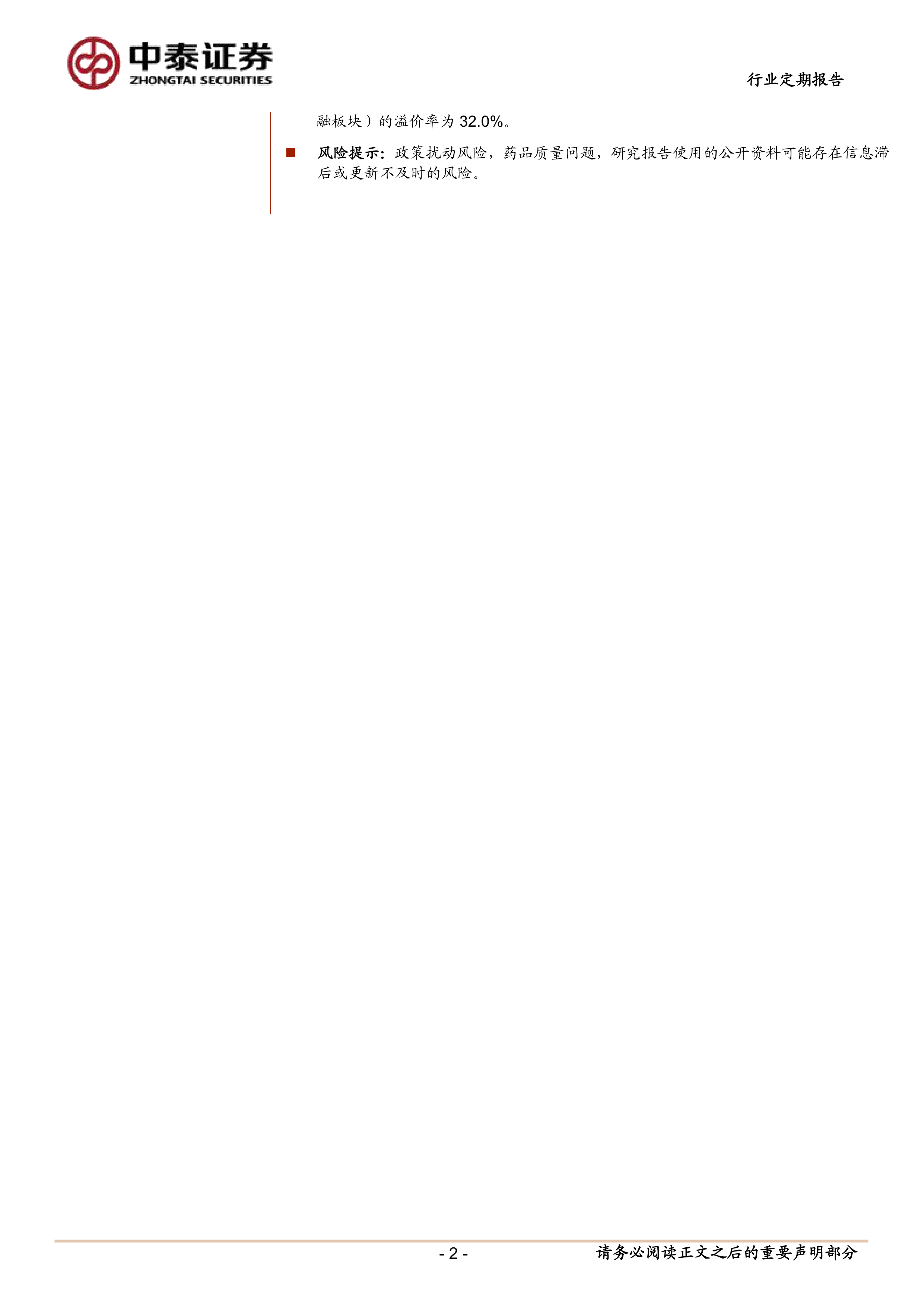 风险提示:政策扰动风险,药品质量问题,研究报告使用的公开资料可能存在信息滞后或更新不及时的风险。