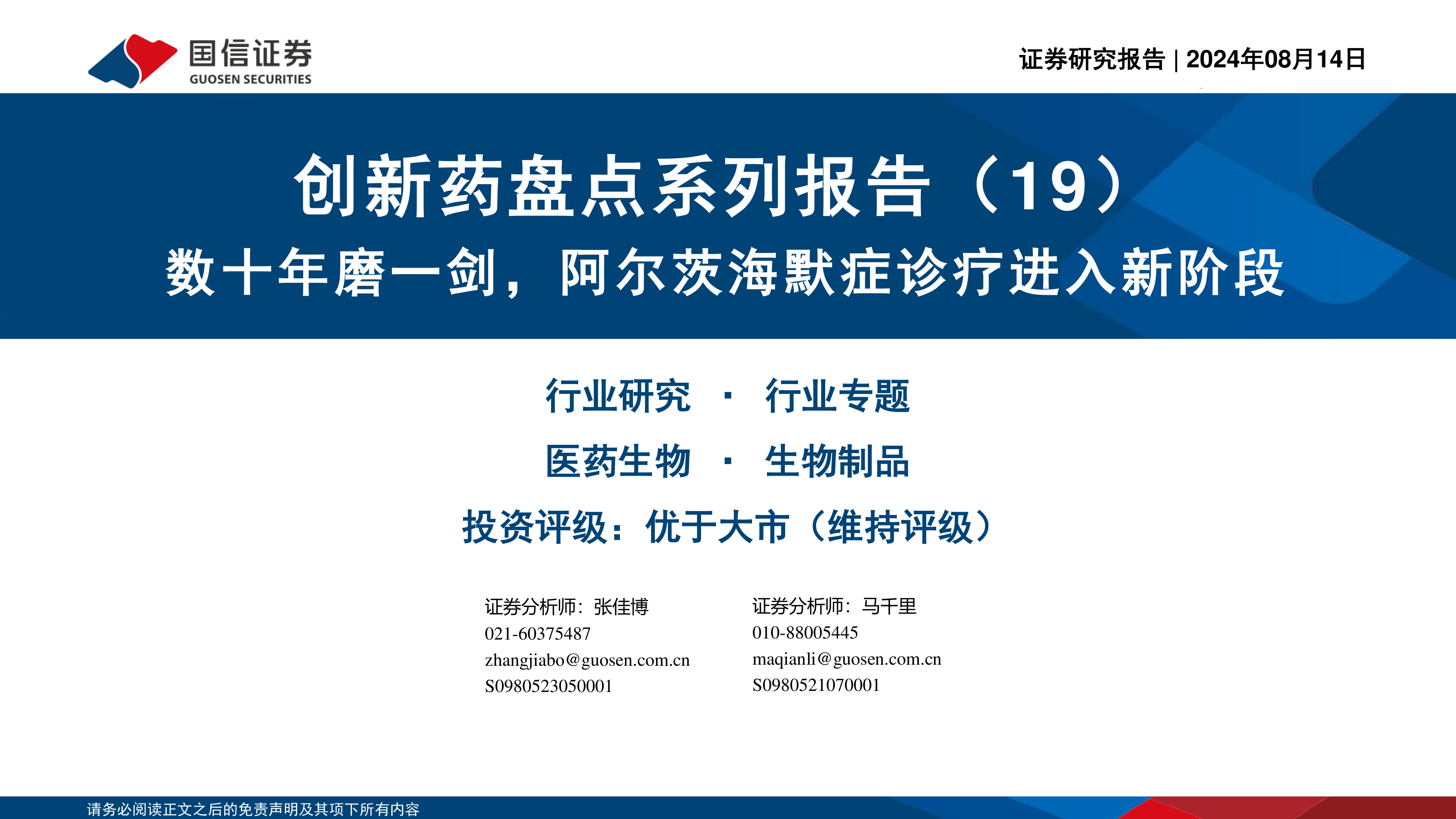 创新药盘点系列报告(19):数十年磨一剑,阿尔茨海默症诊疗进入新阶段